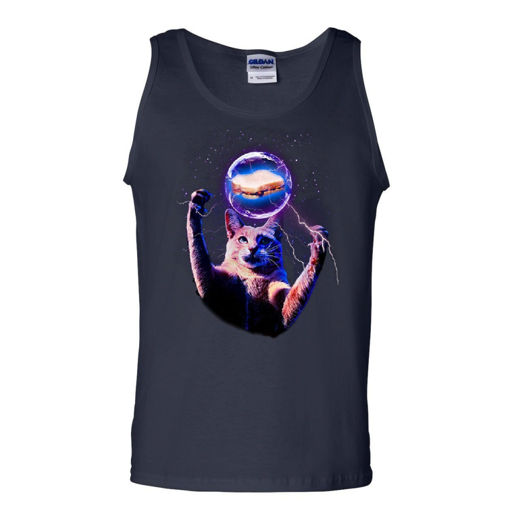 CAT CATCHING A PB&J cat catching a sandwich tank top plasma ball kitty kitten weird sleeveless navy blue