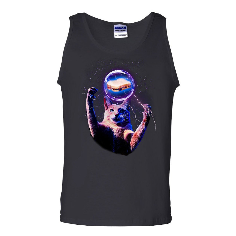 CAT CATCHING A PB&J cat catching a sandwich tank top plasma ball kitty kitten weird sleeveless black