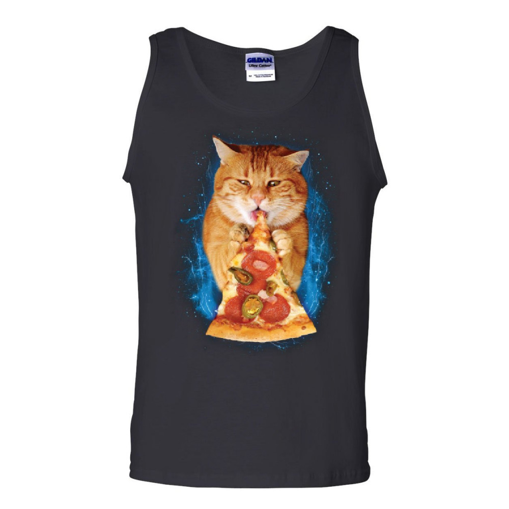 CAT EATING PIZZA tank top funny weird kitten pet kitty peperoni sleeveless black