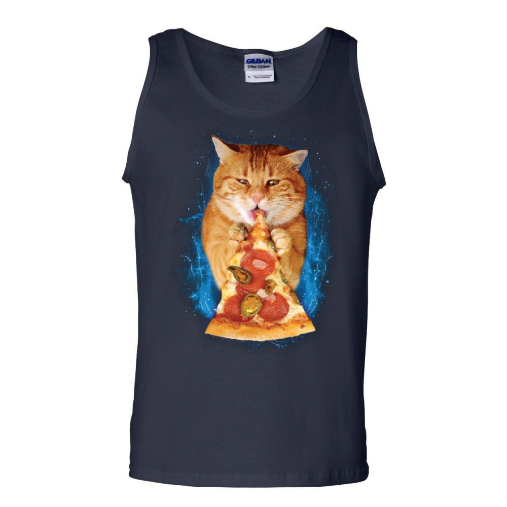 CAT EATING PIZZA tank top funny weird kitten pet kitty peperoni sleeveless navy blue