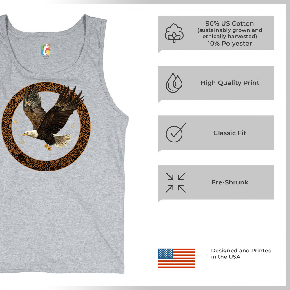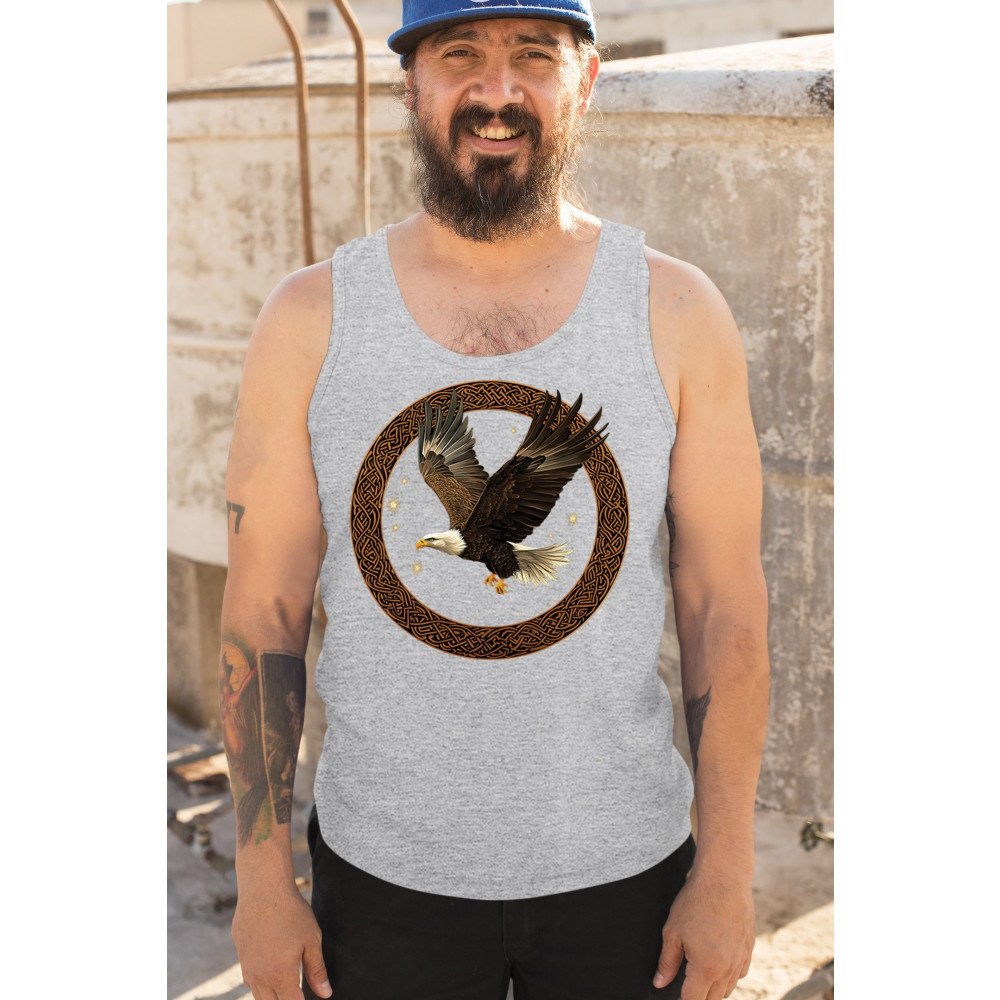 This powerful bald eagle takes flight within a Celtic knotwork circle, radiating strength, independence, and cosmic energy. The glowing stars and celestial background add mystic symbolism, blending nature, tribal design, and spirituality. Perfect for patriots, spiritual seekers, and bird enthusiasts.
