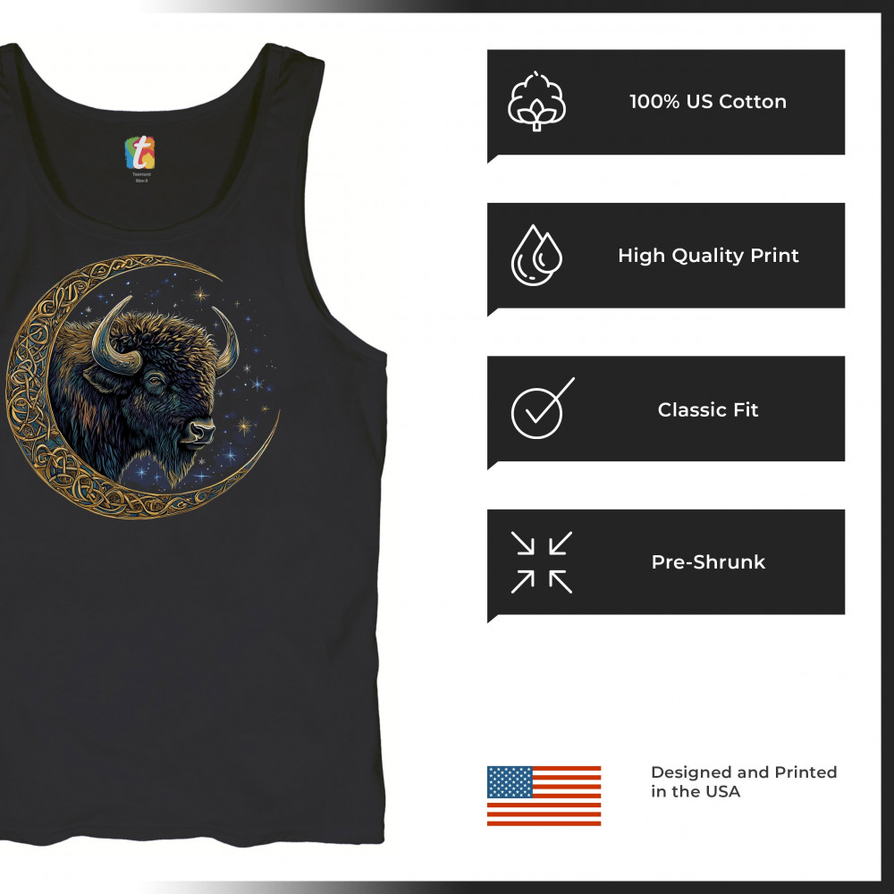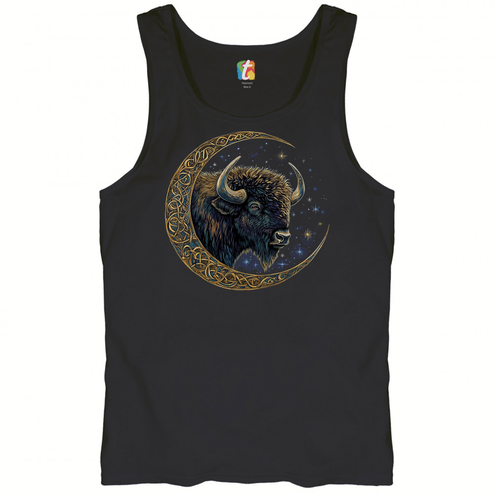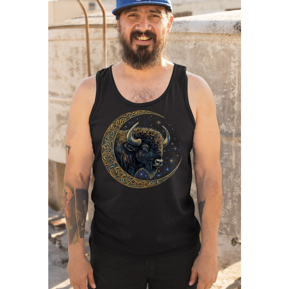 CELTIC MOON BISON tank top mystical forest animal wildlife celestial men's top black