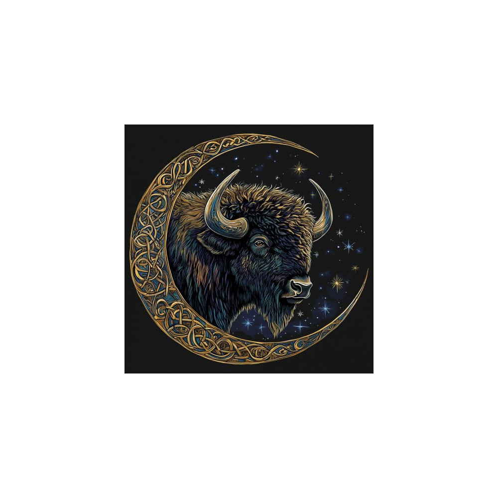Mystical bison in Celtic moon—perfect for spiritual seekers, art fans, stargazers, and lovers of nature, tribal design, and cosmic energy.