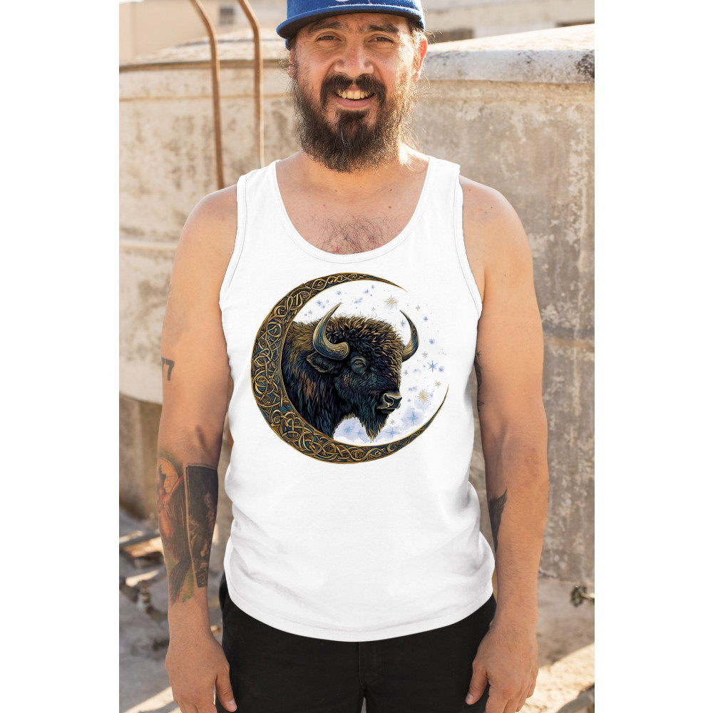 Mystical bison in Celtic moon—perfect for spiritual seekers, art fans, stargazers, and lovers of nature, tribal design, and cosmic energy.