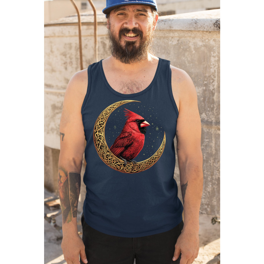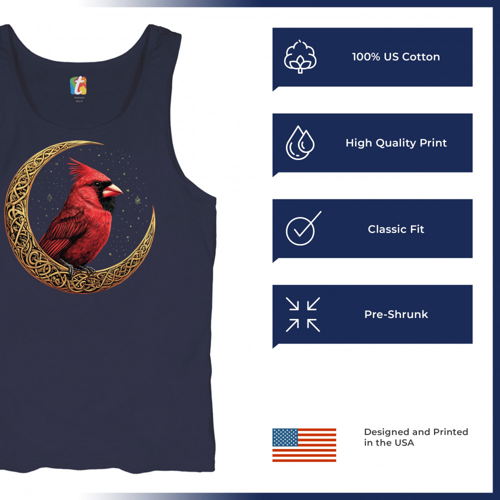 Mystical cardinal with Celtic moon and stars—perfect for nature lovers, spiritual souls, and those honoring love, loss, or remembrance.