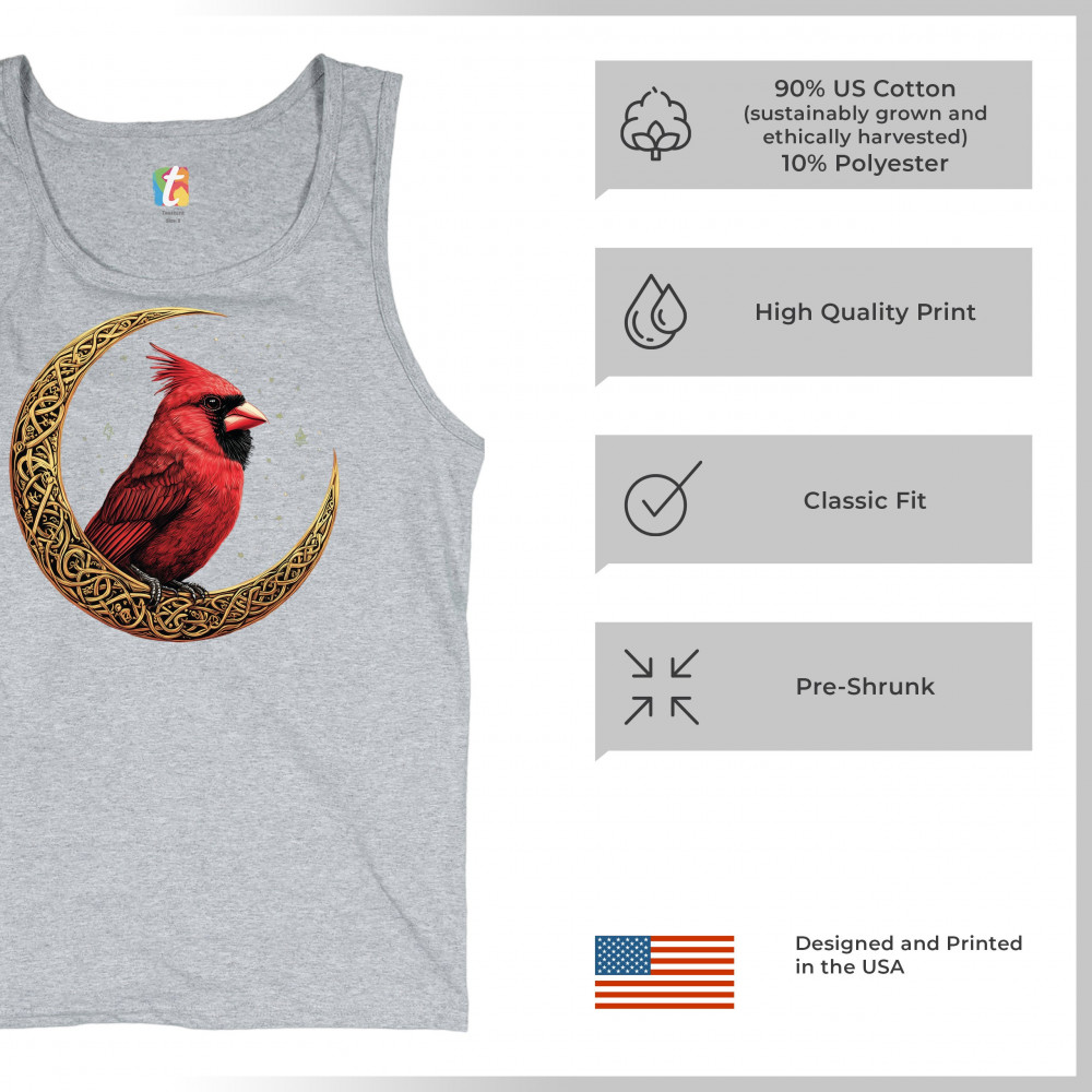 Mystical cardinal with Celtic moon and stars—perfect for nature lovers, spiritual souls, and those honoring love, loss, or remembrance.