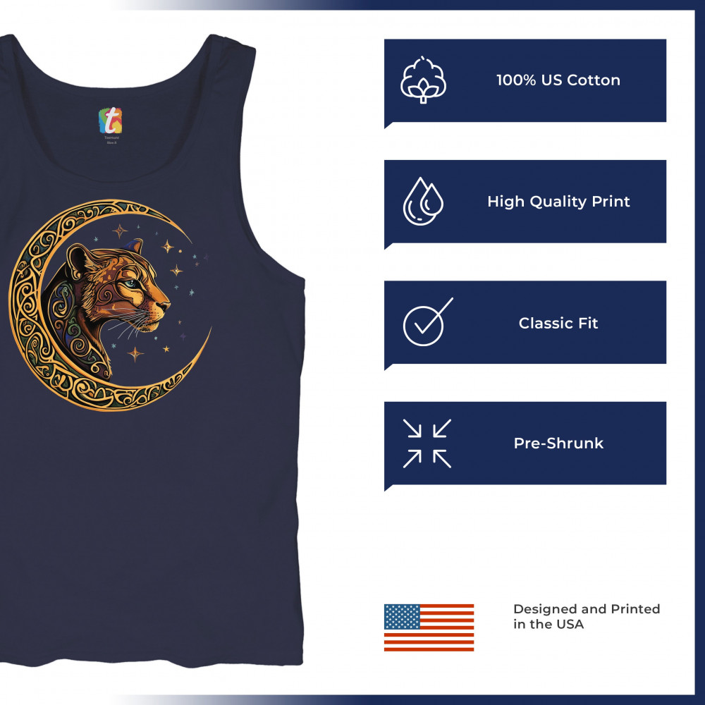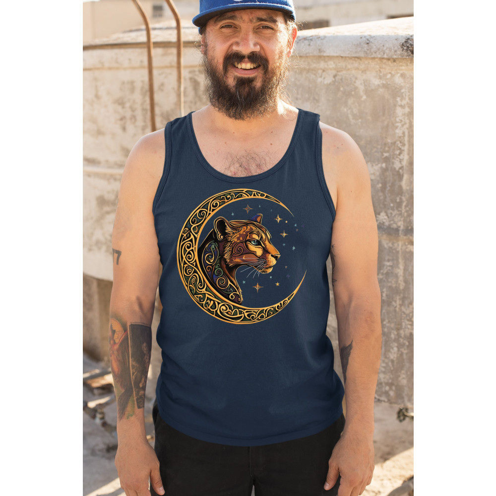 Mystical and elegant, this celestial leopard design merges wild animal strength with spiritual energy. Framed by a golden Celtic crescent moon and set against a starlit sky, it captures themes of nature, intuition, tribal symbolism, fantasy, and feminine power. Ideal for astrology fans, animal lovers, and seekers of cosmic connection.