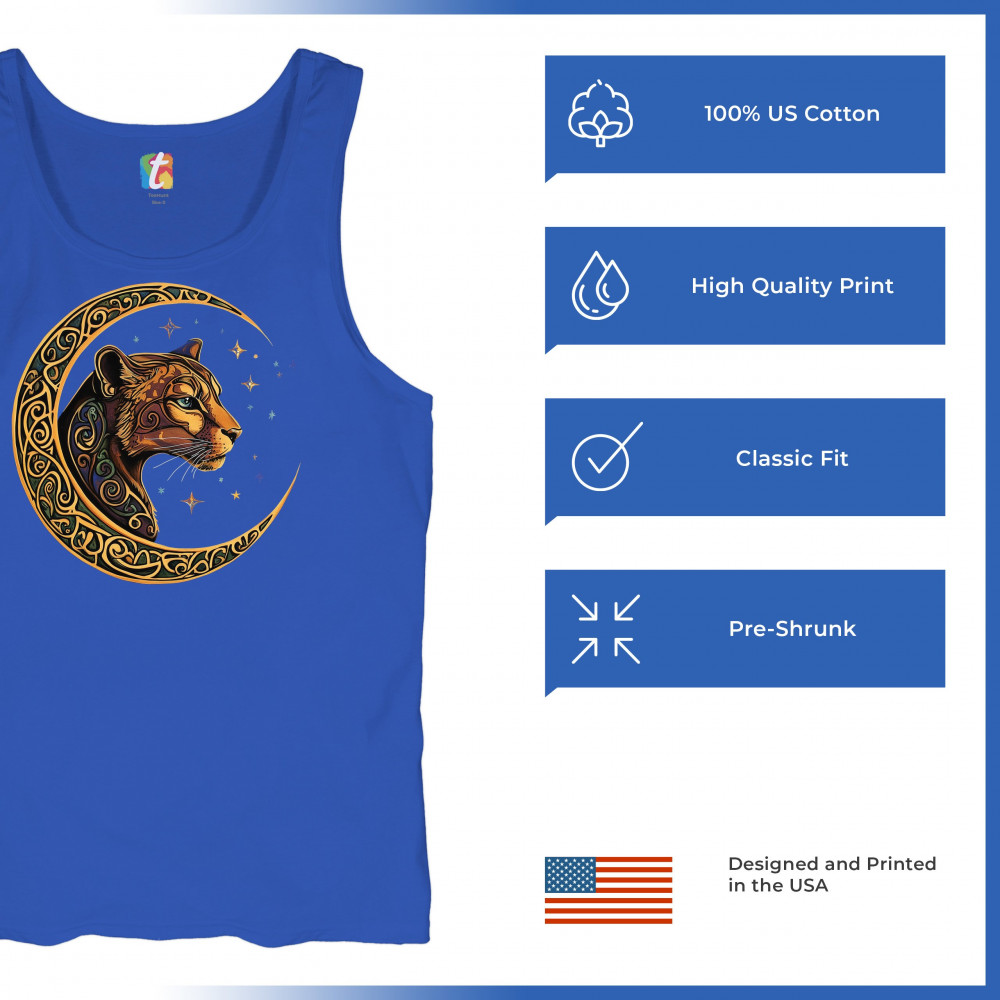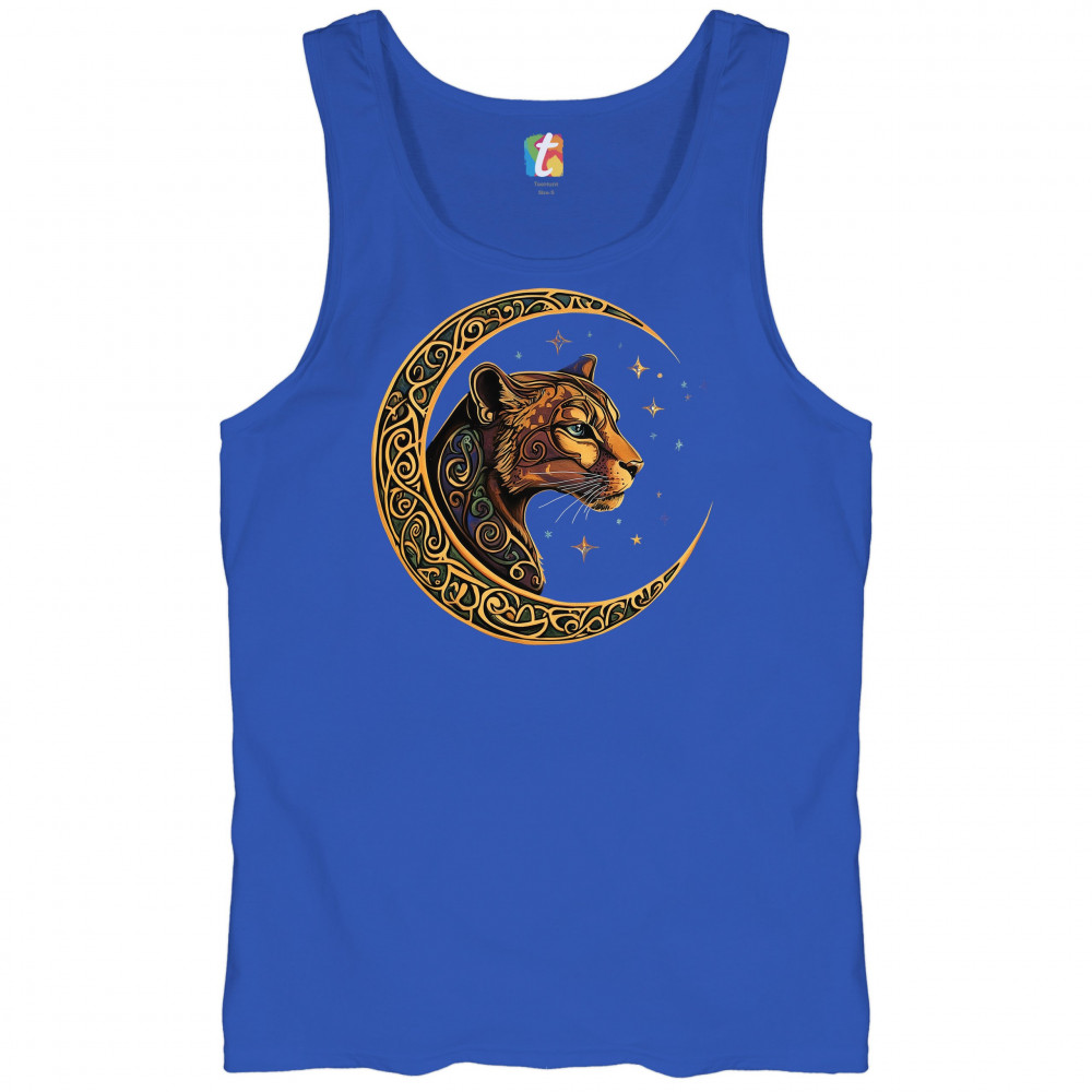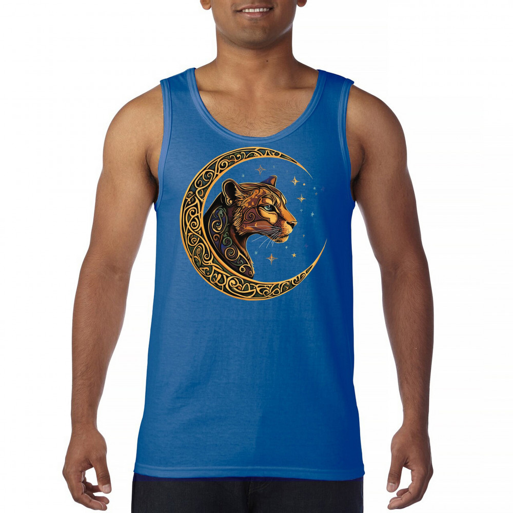 Mystical and elegant, this celestial leopard design merges wild animal strength with spiritual energy. Framed by a golden Celtic crescent moon and set against a starlit sky, it captures themes of nature, intuition, tribal symbolism, fantasy, and feminine power. Ideal for astrology fans, animal lovers, and seekers of cosmic connection.