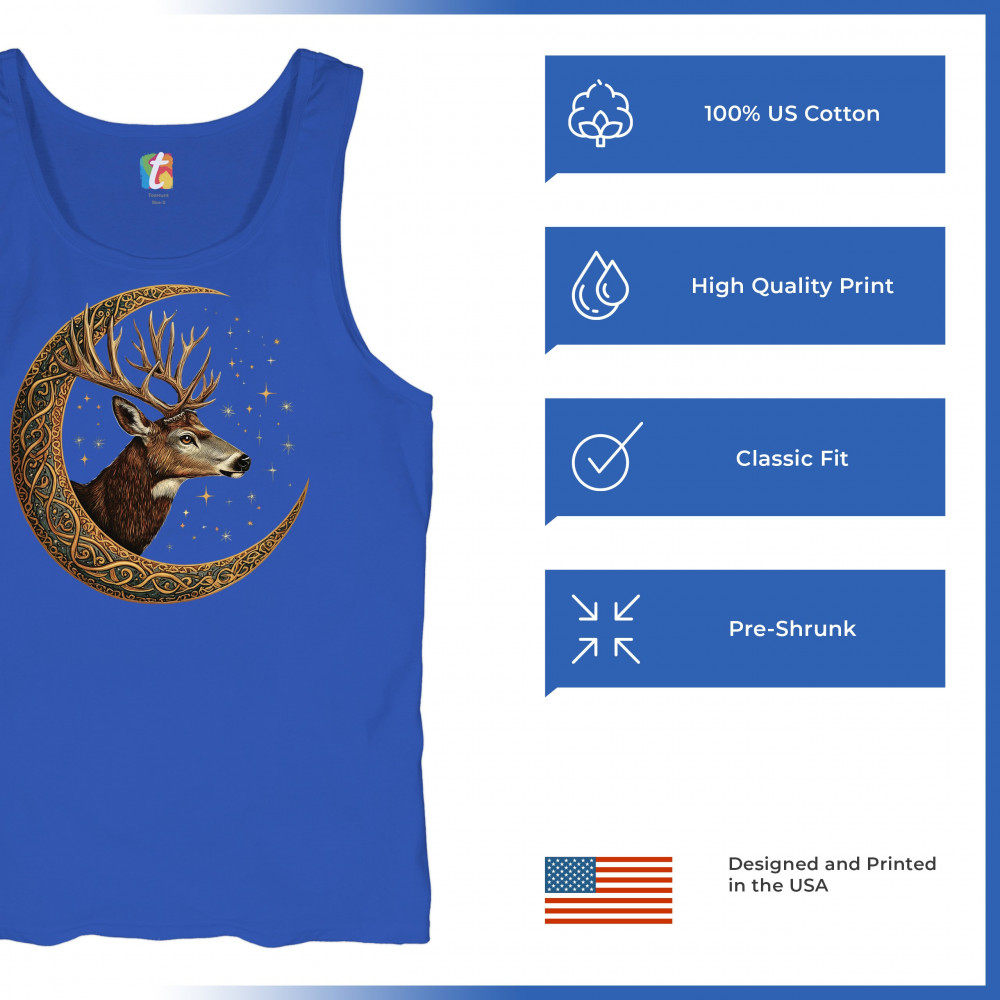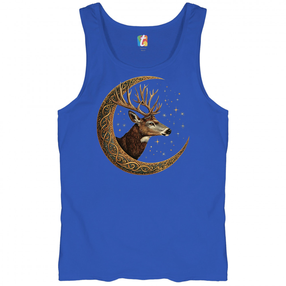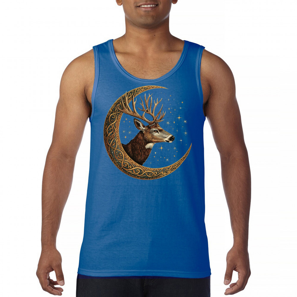 Majestic deer in Celtic moon with stars—symbol of protection, nature, and cosmic wisdom. A mystical gift for hunters, druids, and forest lovers.