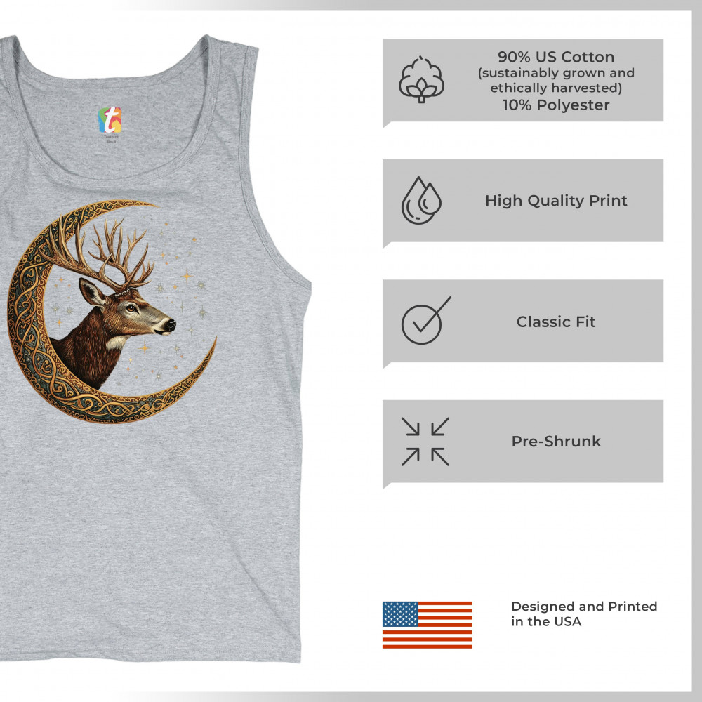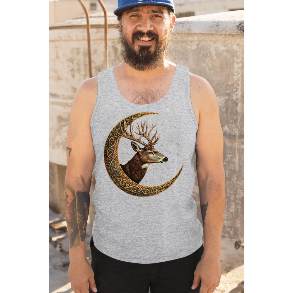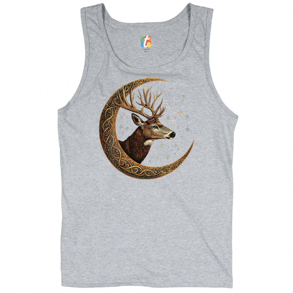 Majestic deer in Celtic moon with stars—symbol of protection, nature, and cosmic wisdom. A mystical gift for hunters, druids, and forest lovers.