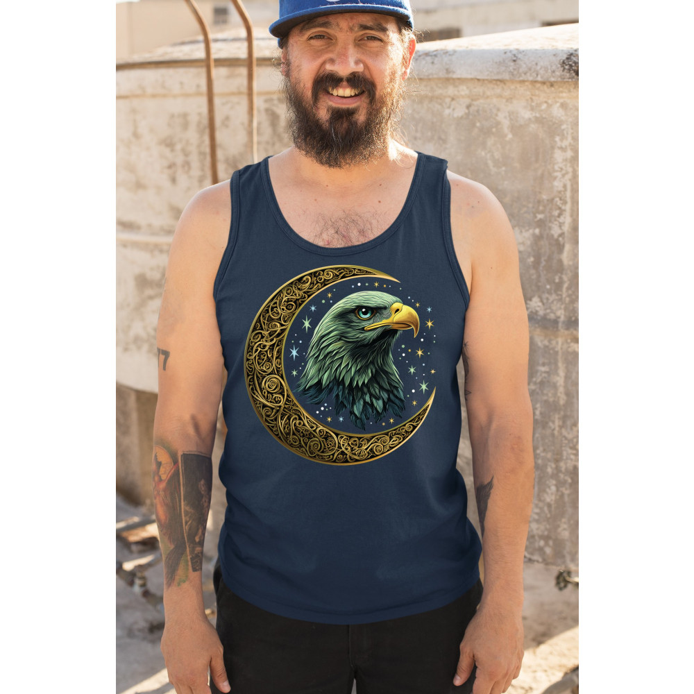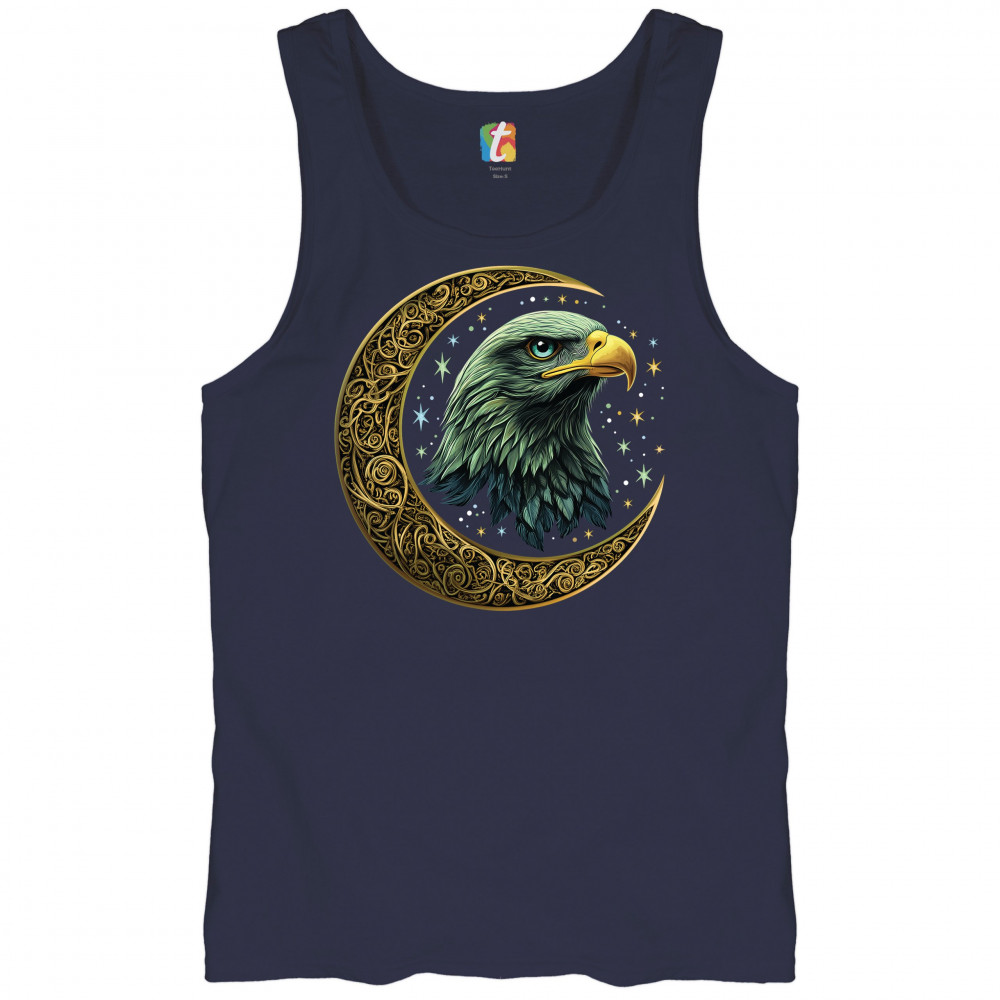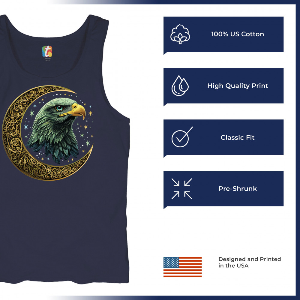 Majestic eagle in golden Celtic moon with stars—symbol of strength, vision, and freedom. Perfect for patriots, spiritual seekers, and nature lovers.