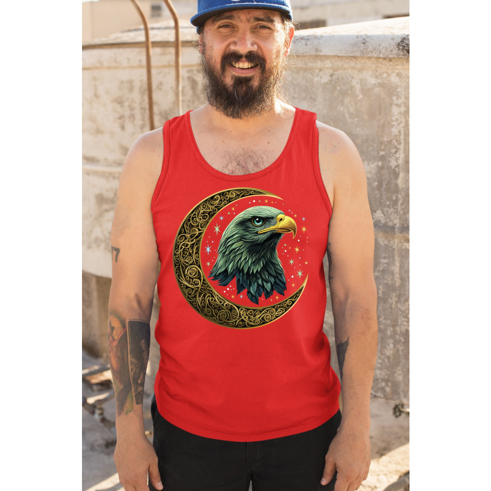 Majestic eagle in golden Celtic moon with stars—symbol of strength, vision, and freedom. Perfect for patriots, spiritual seekers, and nature lovers.