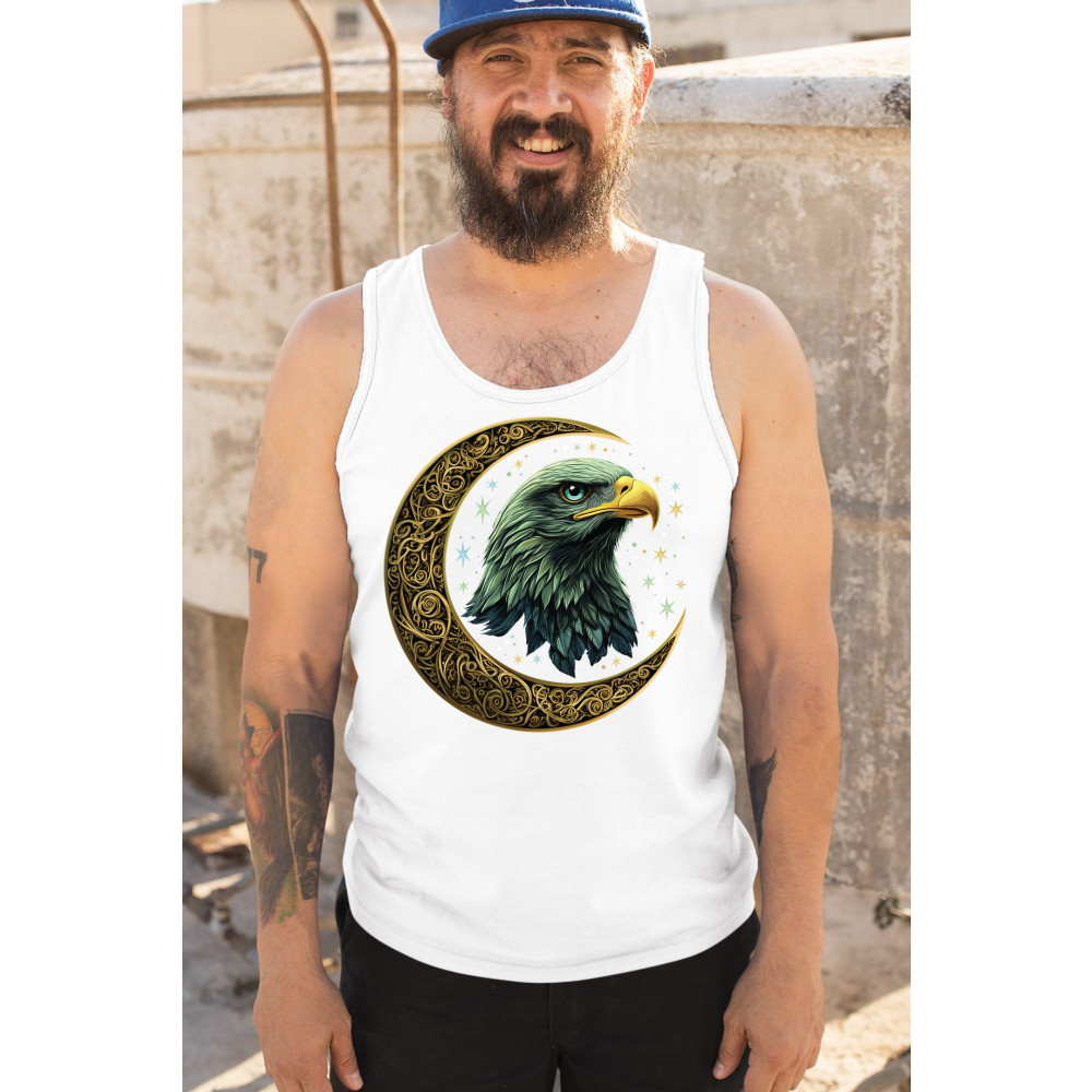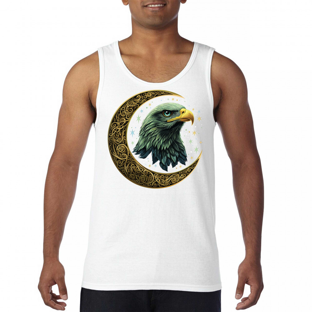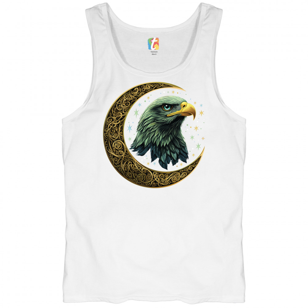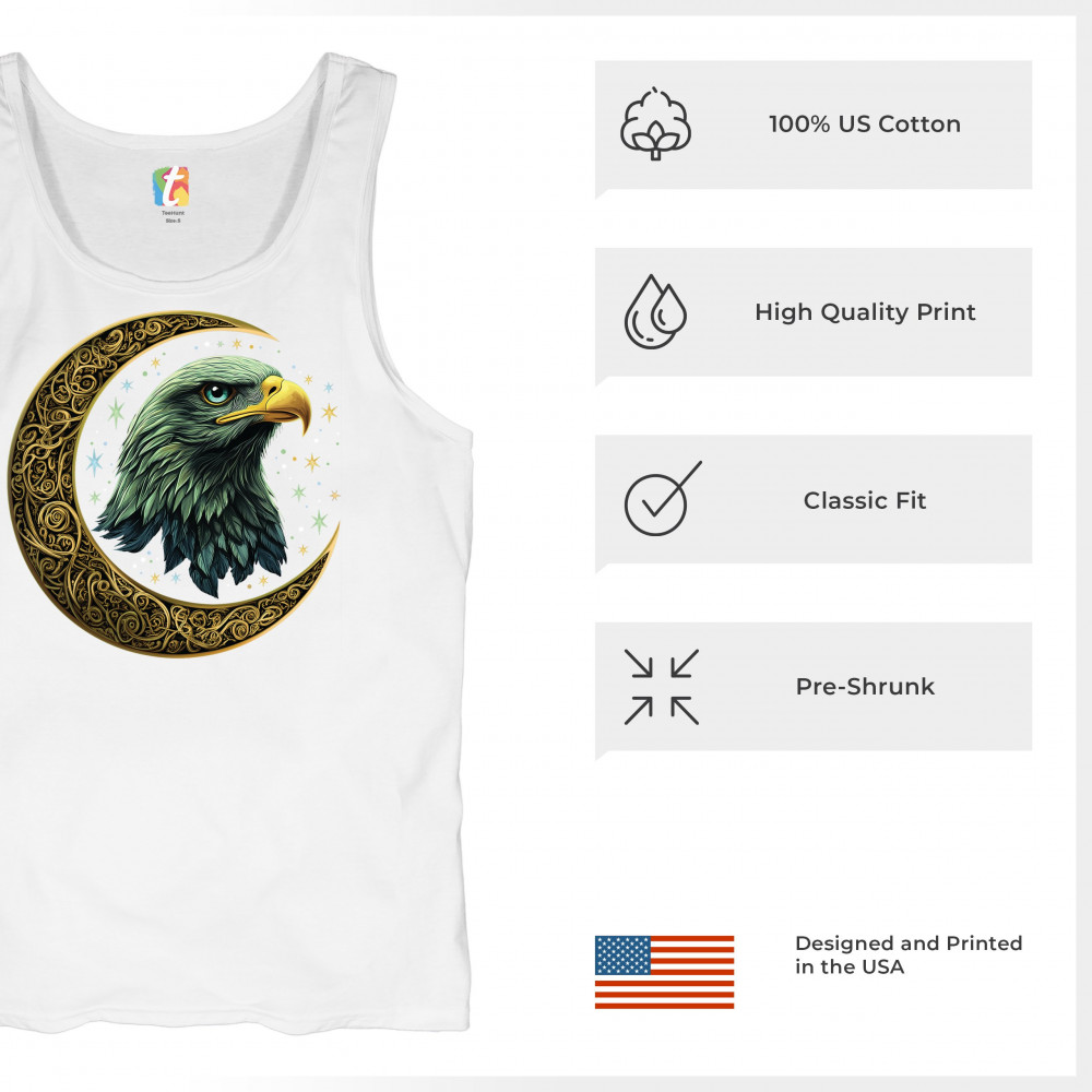 Majestic eagle in golden Celtic moon with stars—symbol of strength, vision, and freedom. Perfect for patriots, spiritual seekers, and nature lovers.