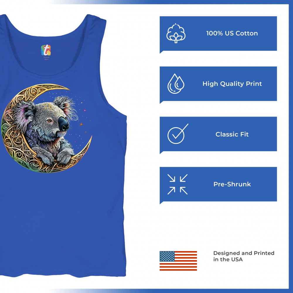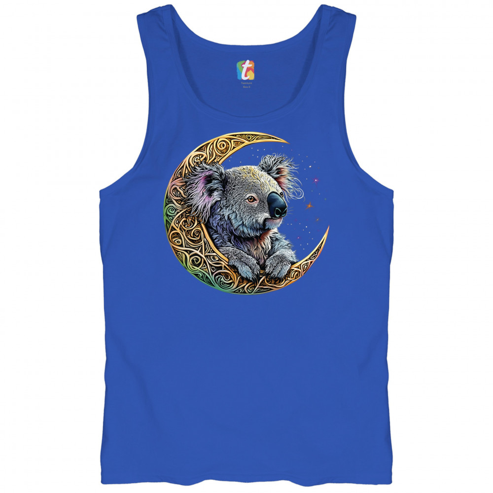 Koala resting in Celtic crescent moon with cosmic sky. A peaceful design for nature lovers, spiritual thinkers, and fantasy art fans.