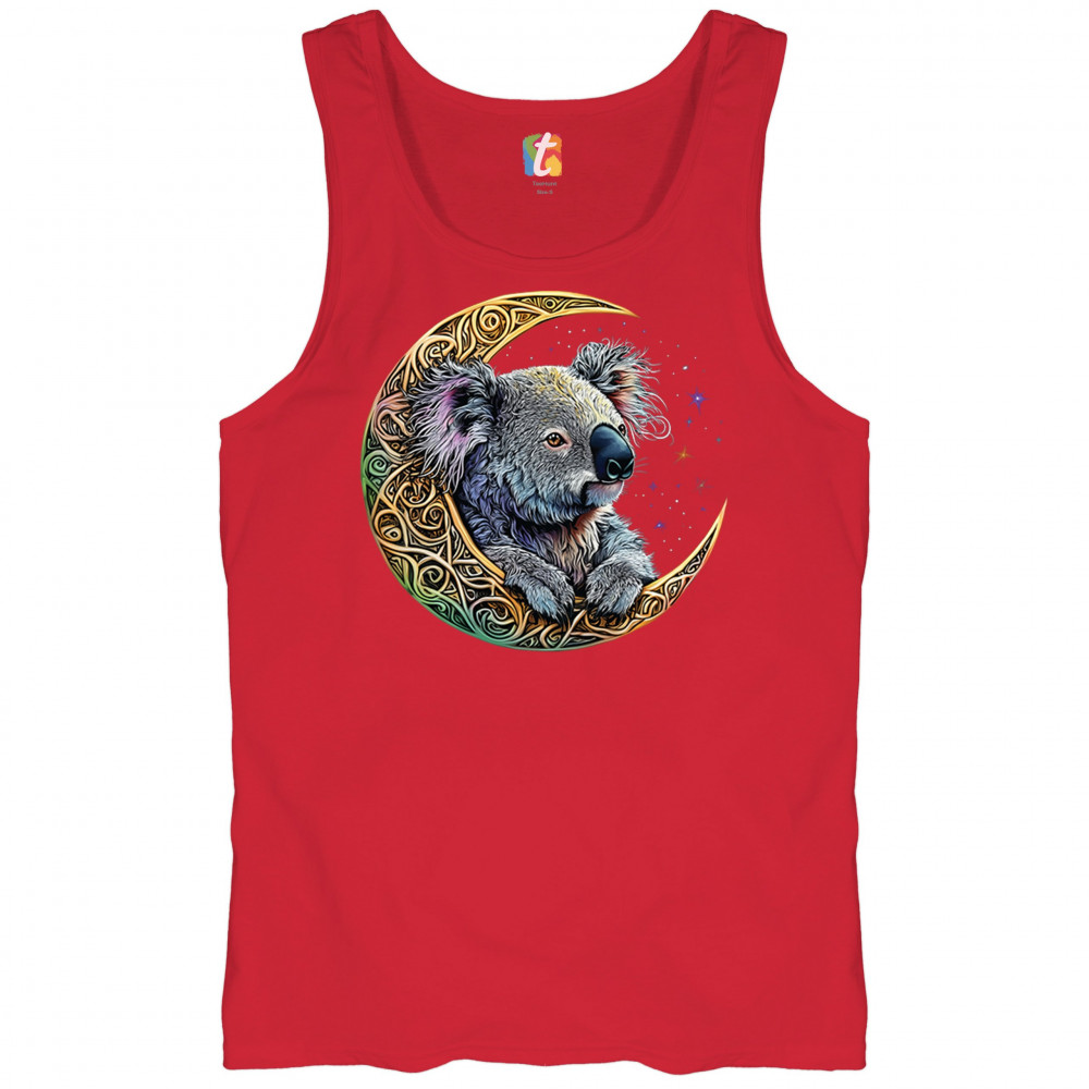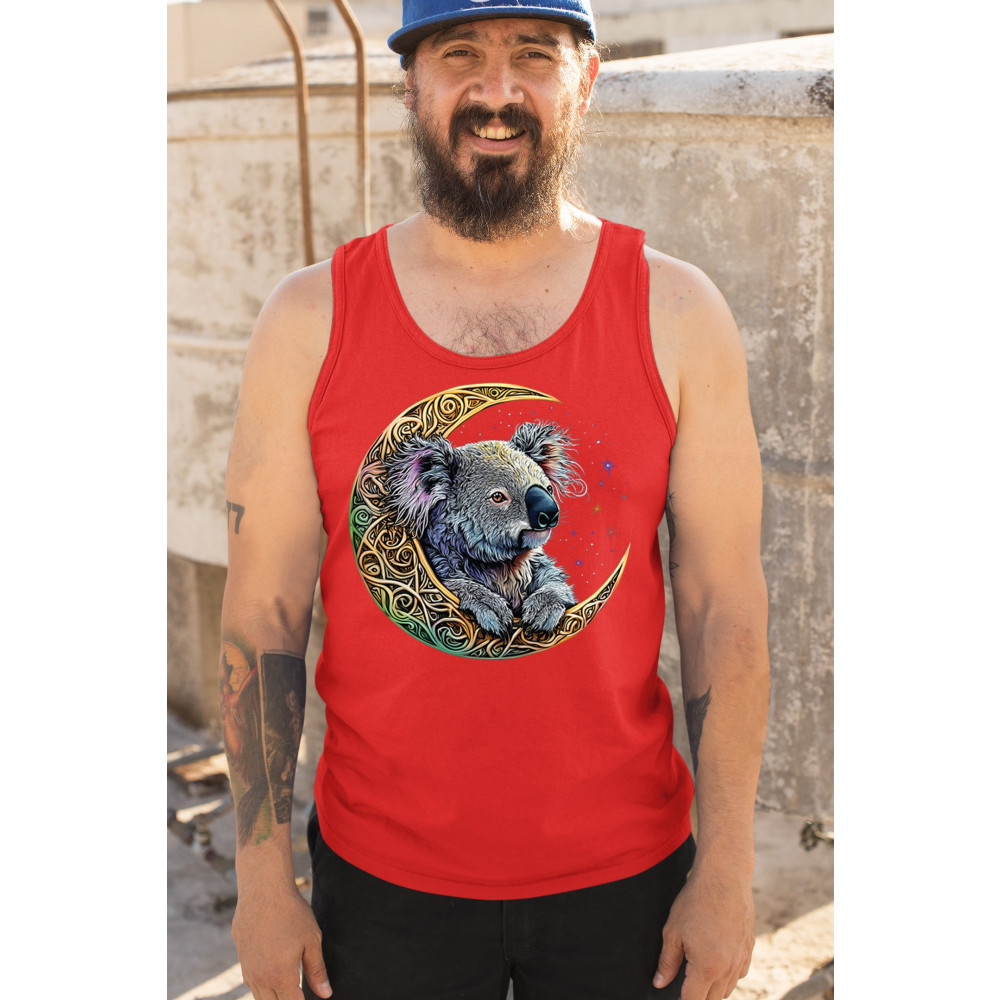 Koala resting in Celtic crescent moon with cosmic sky. A peaceful design for nature lovers, spiritual thinkers, and fantasy art fans.