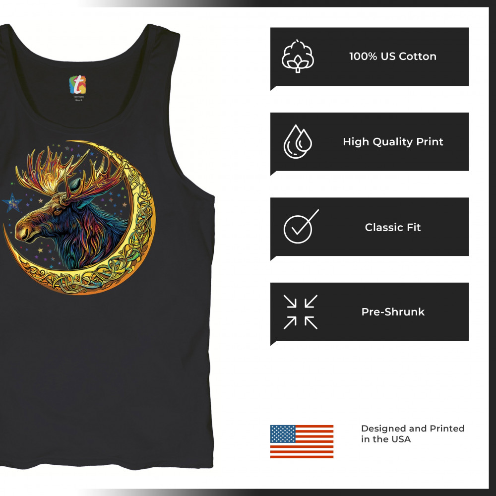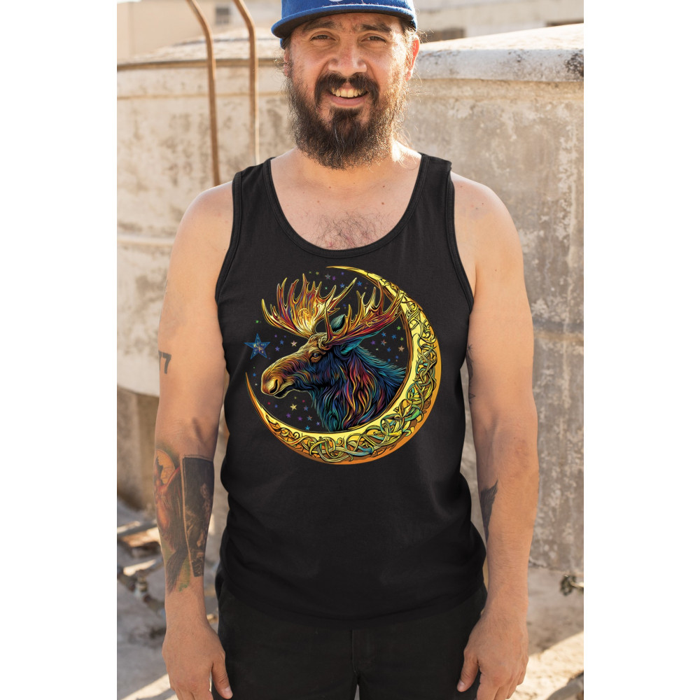 CELTIC MOON MOOSE tank top mystical beast majestic cosmic wildlife men's top black