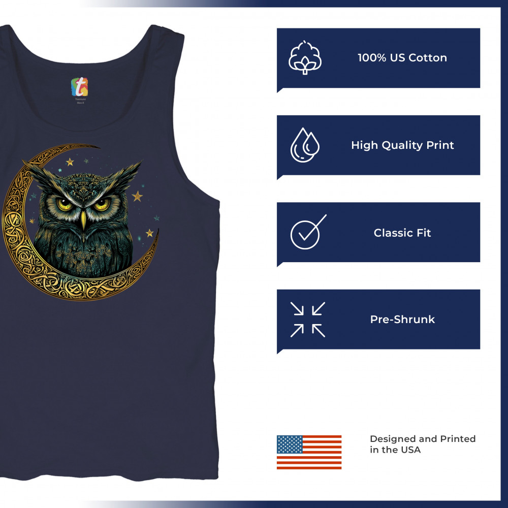 Cosmic owl in Celtic crescent moon—symbol of wisdom, night mystery, and spirit. Perfect for mystics, owl lovers, and fantasy fans.