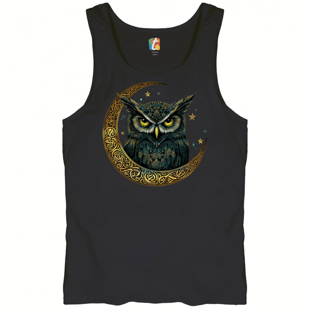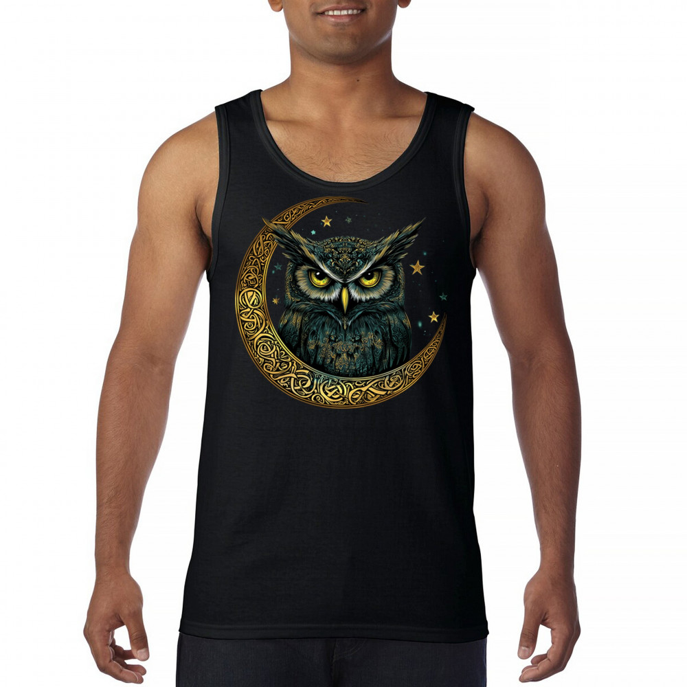 CELTIC MOON OWL tank top mystic night bird spiritual wisdom symbol men's top black