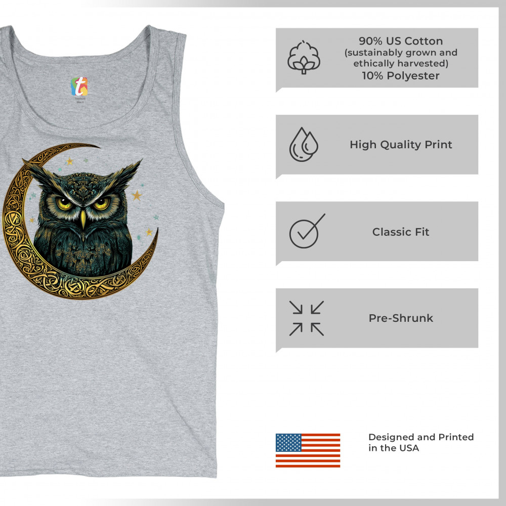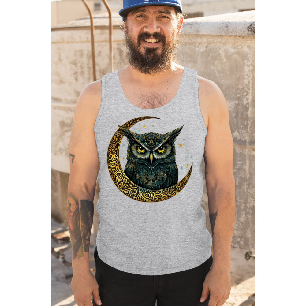 Cosmic owl in Celtic crescent moon—symbol of wisdom, night mystery, and spirit. Perfect for mystics, owl lovers, and fantasy fans.