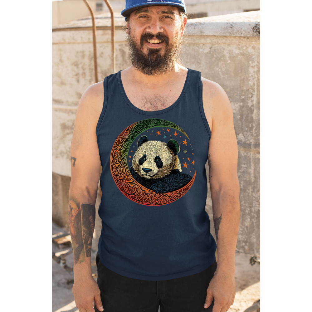 Peaceful panda in Celtic crescent moon design—symbol of harmony, balance, and spiritual calm for nature lovers, mystics, and gentle souls.