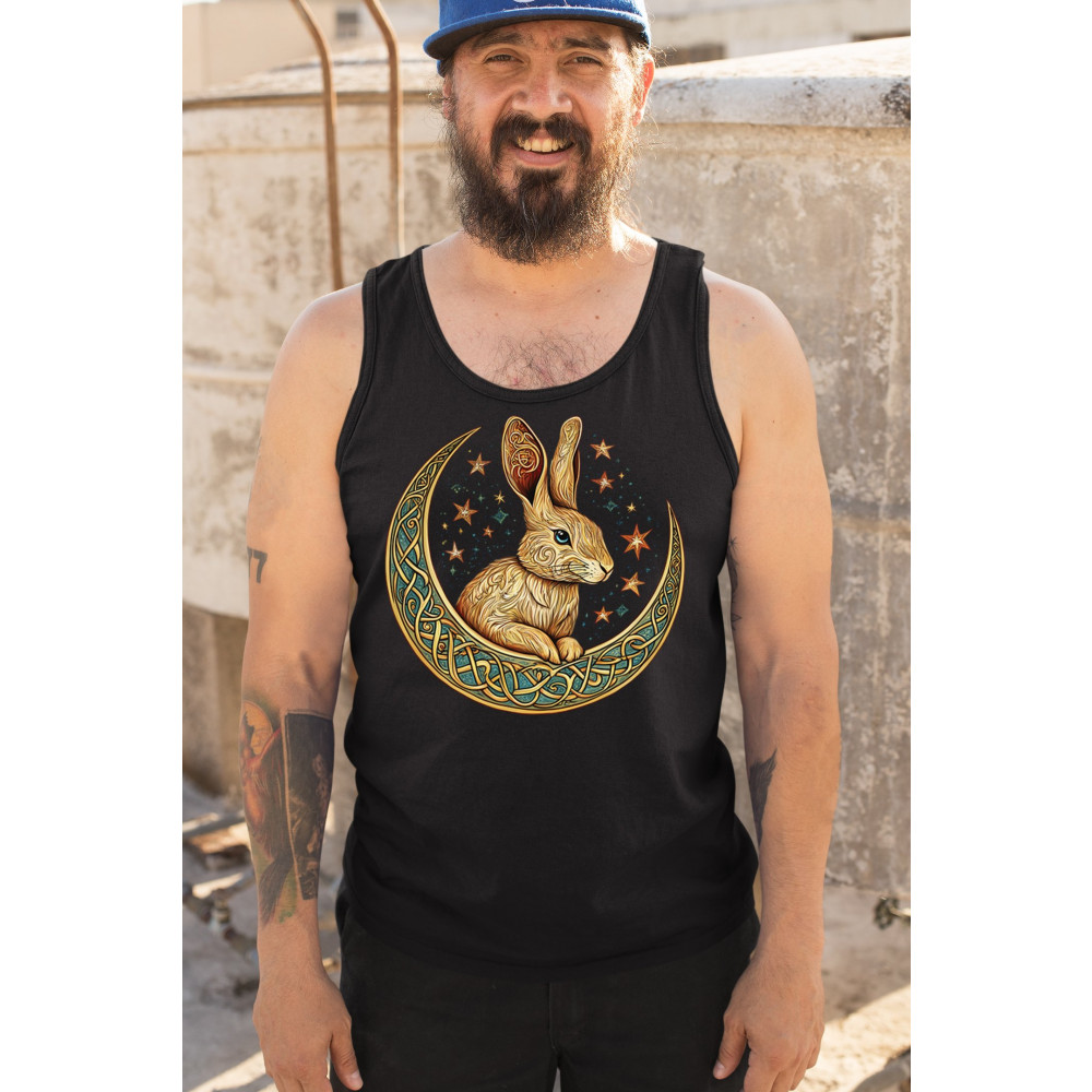 Mystical rabbit in Celtic moon—symbolizing intuition, rebirth, and spring energy. Ideal for fantasy lovers, mystics, and nature fans.
