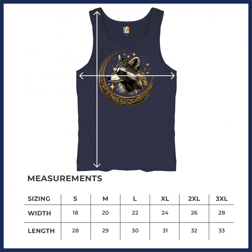 Cosmic raccoon design in Celtic moon. Symbol of adaptability, mystery, and spiritual intelligence. A perfect gift for wild and curious souls.