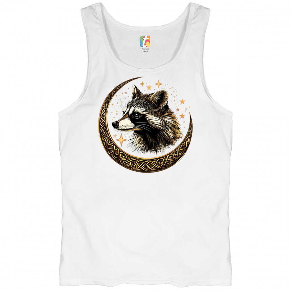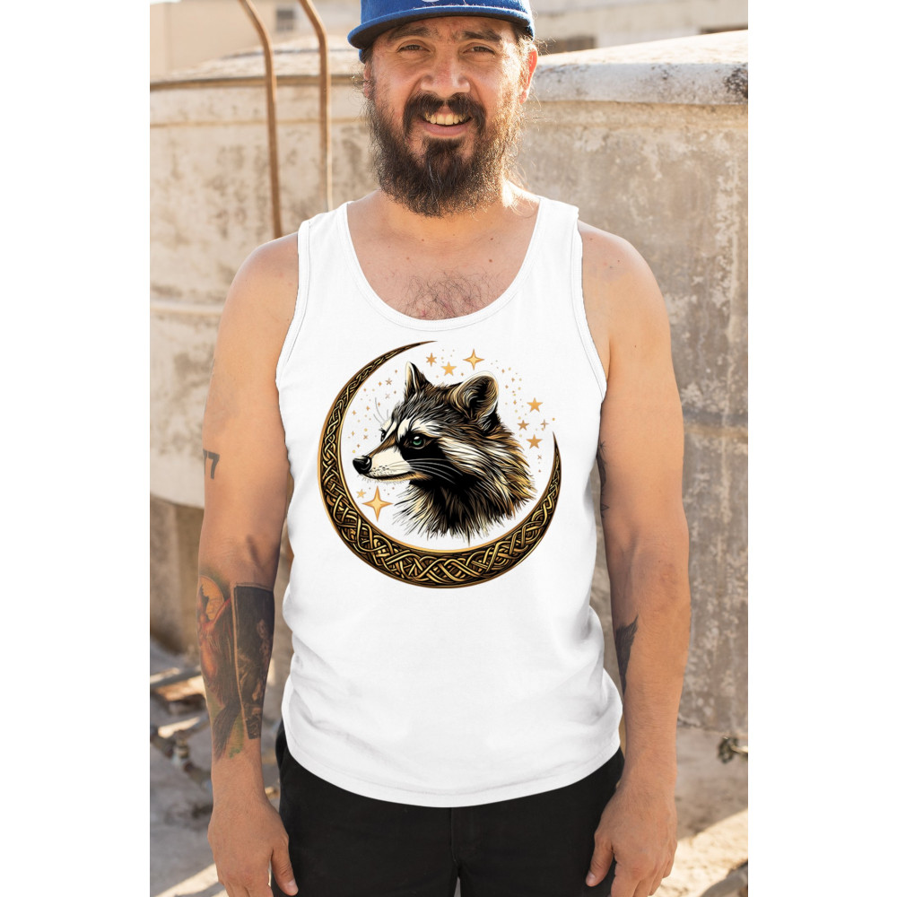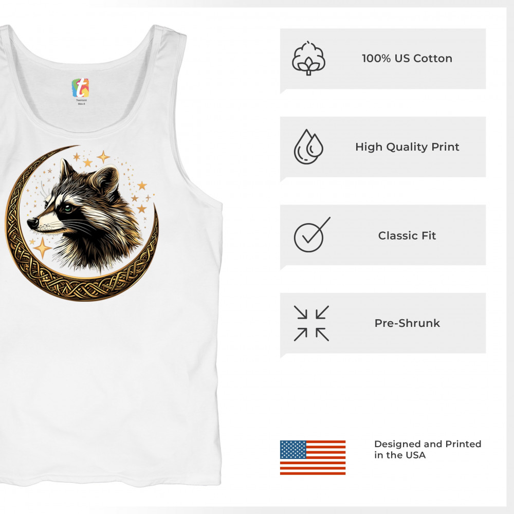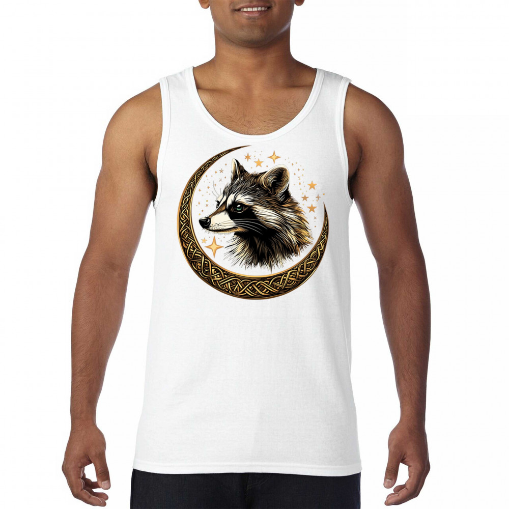 Cosmic raccoon design in Celtic moon. Symbol of adaptability, mystery, and spiritual intelligence. A perfect gift for wild and curious souls.