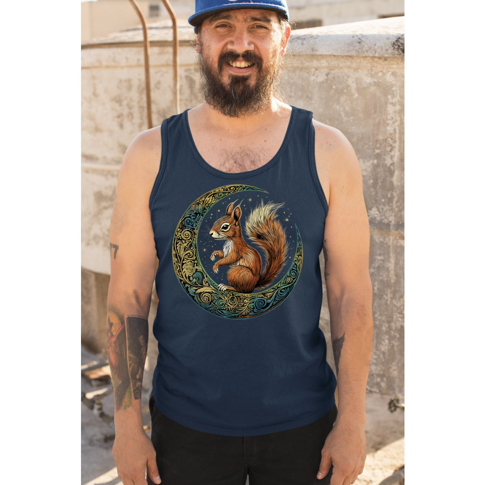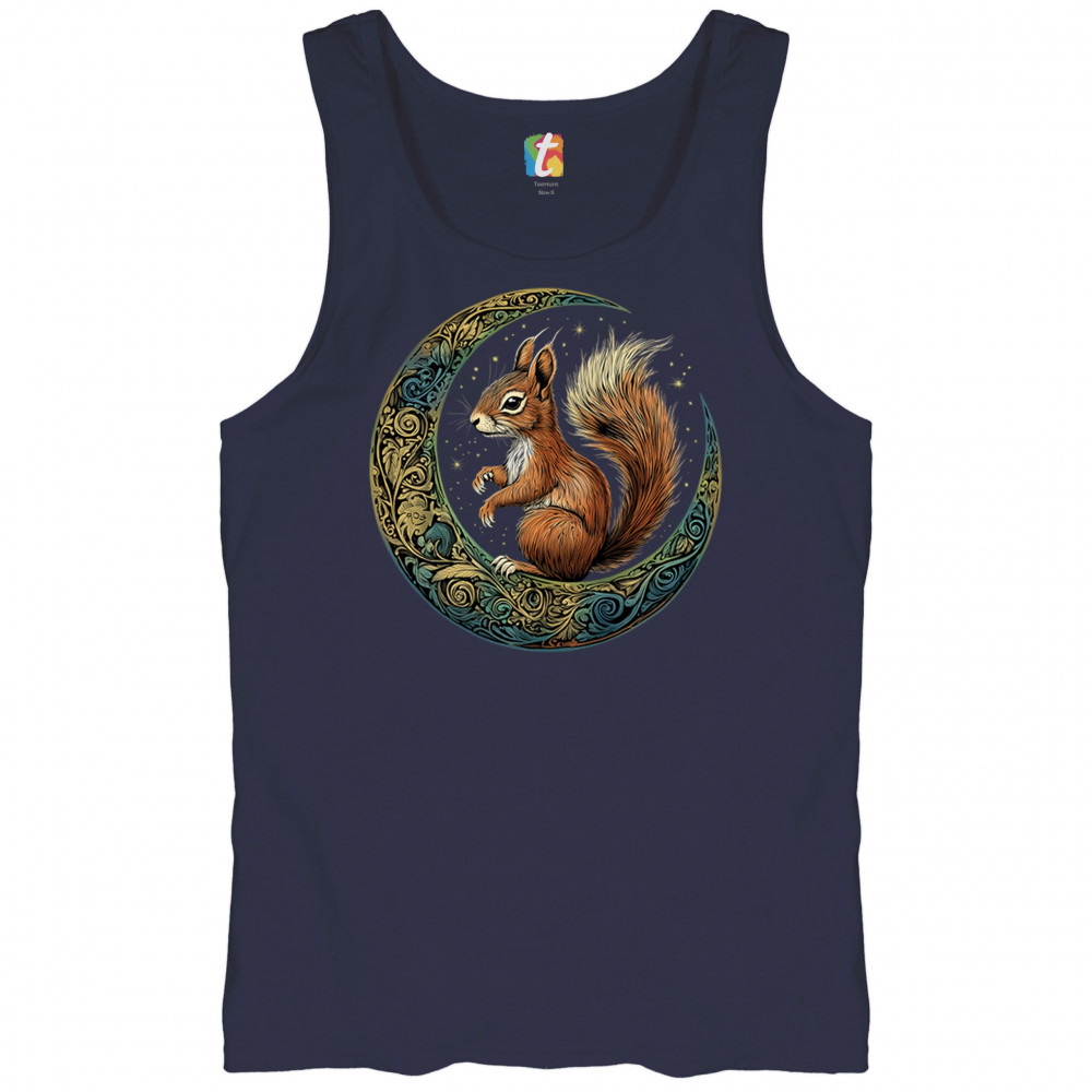 Celebrate agility, awareness, and forest wisdom with this magical red squirrel design. Nestled in a green-gold Celtic crescent moon and backed by a starry cosmic sky, this piece merges natural energy with tribal patterns and celestial wonder. A unique design for animal spirit believers, forest wanderers, and fantasy nature fans.