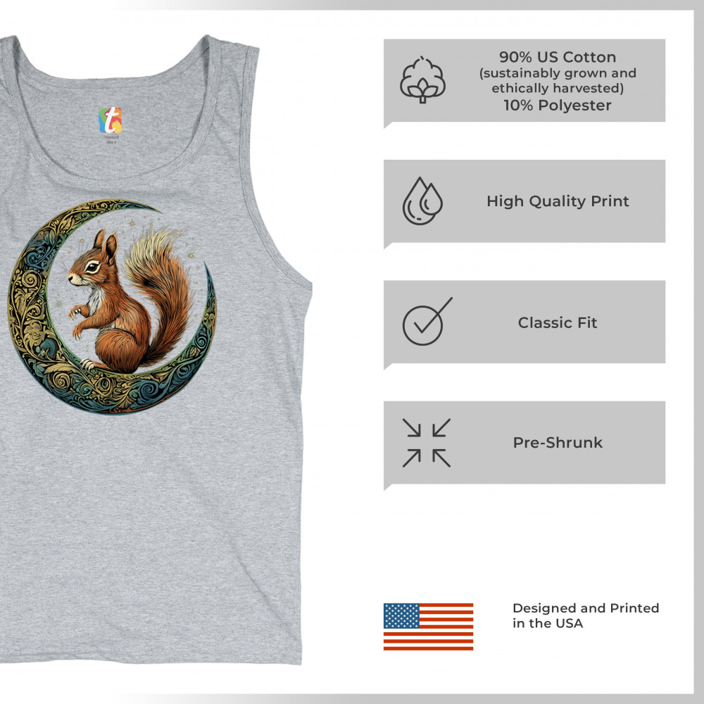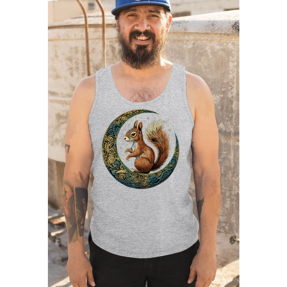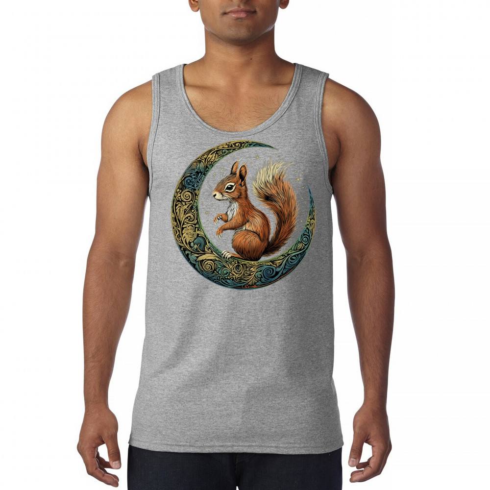 Celebrate agility, awareness, and forest wisdom with this magical red squirrel design. Nestled in a green-gold Celtic crescent moon and backed by a starry cosmic sky, this piece merges natural energy with tribal patterns and celestial wonder. A unique design for animal spirit believers, forest wanderers, and fantasy nature fans.