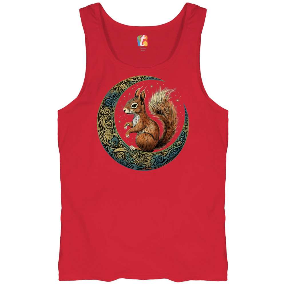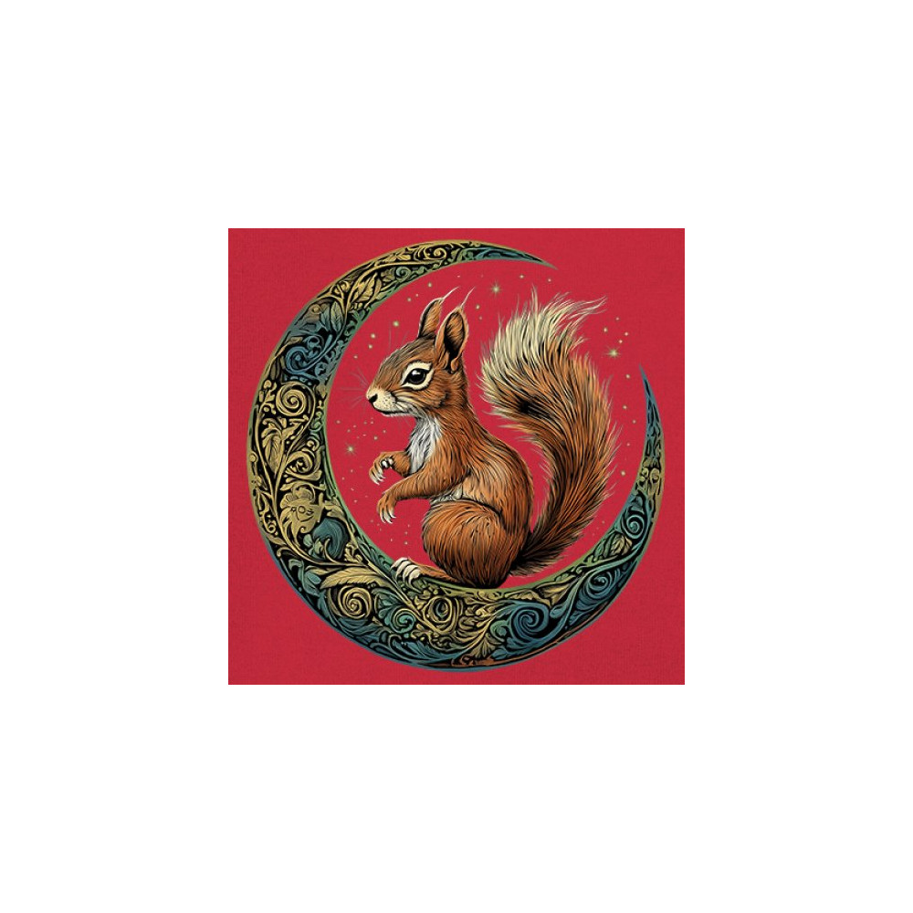 Celebrate agility, awareness, and forest wisdom with this magical red squirrel design. Nestled in a green-gold Celtic crescent moon and backed by a starry cosmic sky, this piece merges natural energy with tribal patterns and celestial wonder. A unique design for animal spirit believers, forest wanderers, and fantasy nature fans.