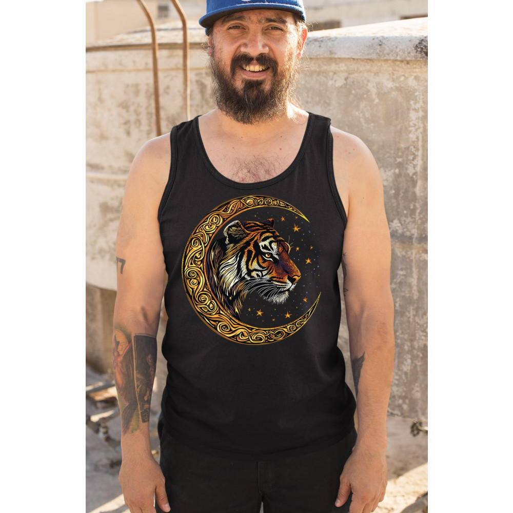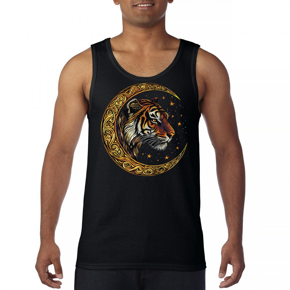CELTIC MOON TIGER tank top vivid mystical jungle beast spiritual cat men's top black