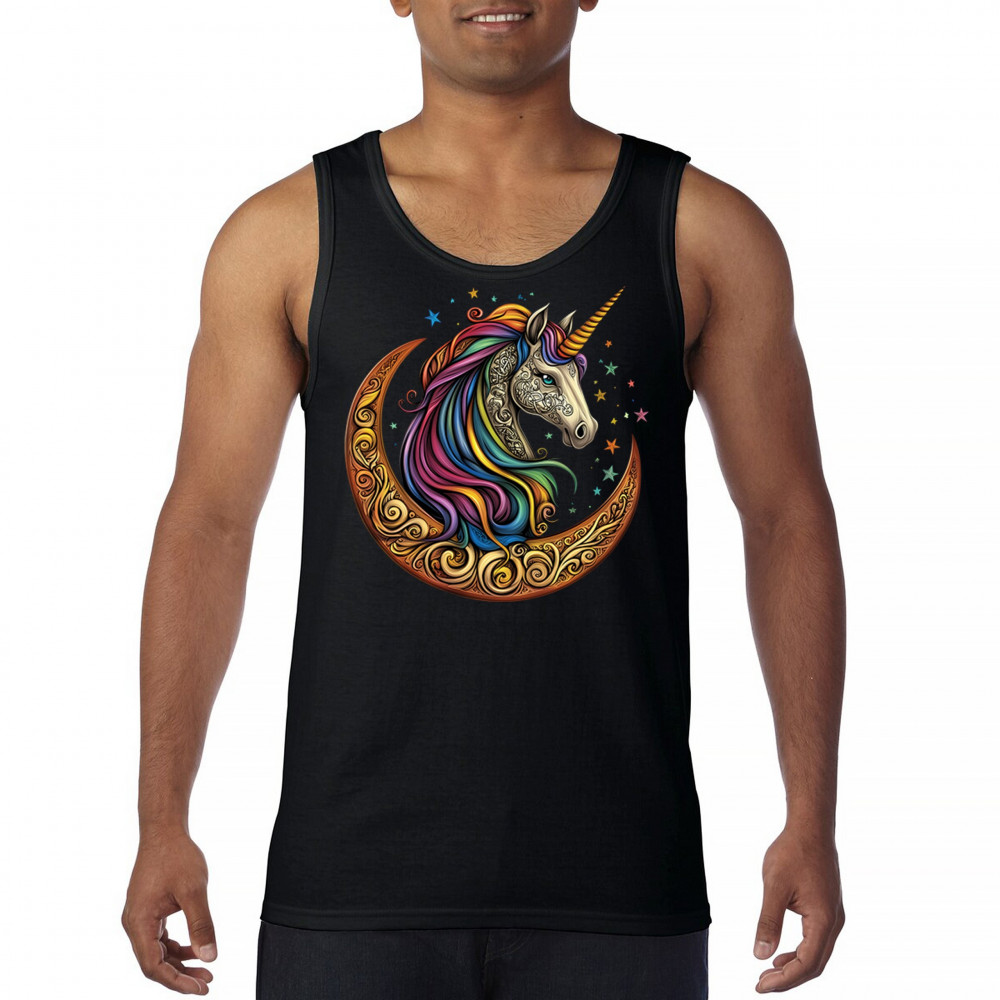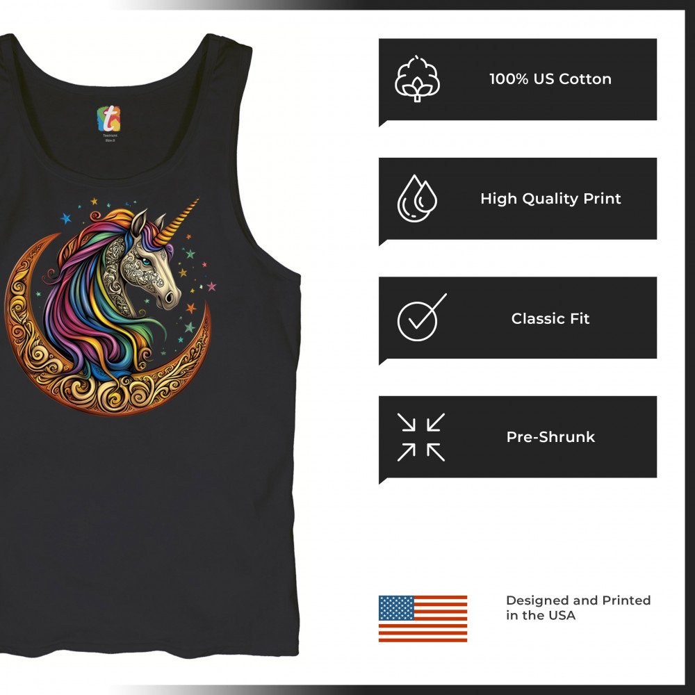 Rainbow-maned unicorn in golden Celtic moon design—perfect for fantasy lovers, dreamers, and unicorn fans who believe in magic and spirit.