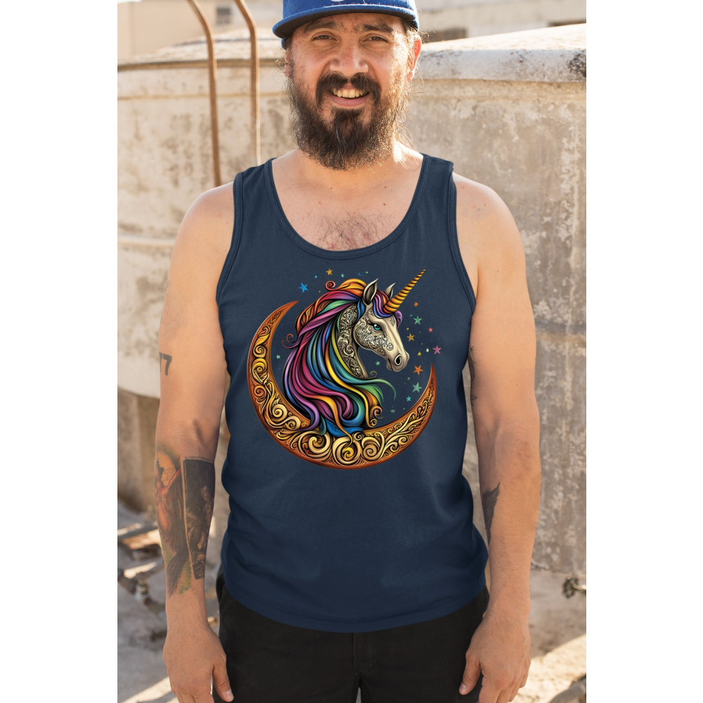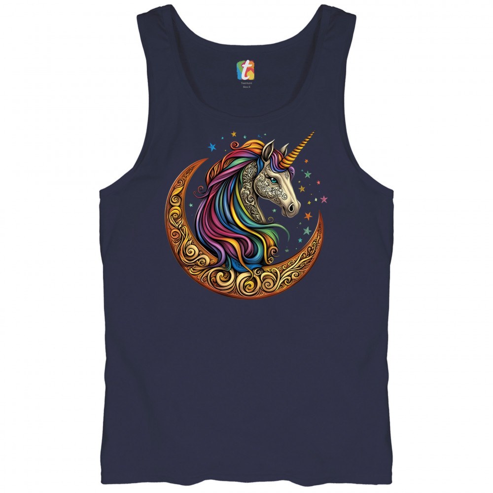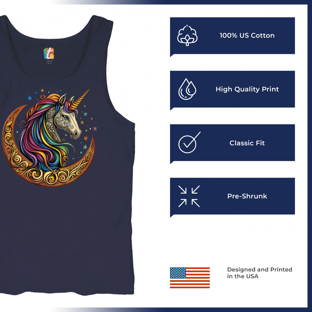 Rainbow-maned unicorn in golden Celtic moon design—perfect for fantasy lovers, dreamers, and unicorn fans who believe in magic and spirit.