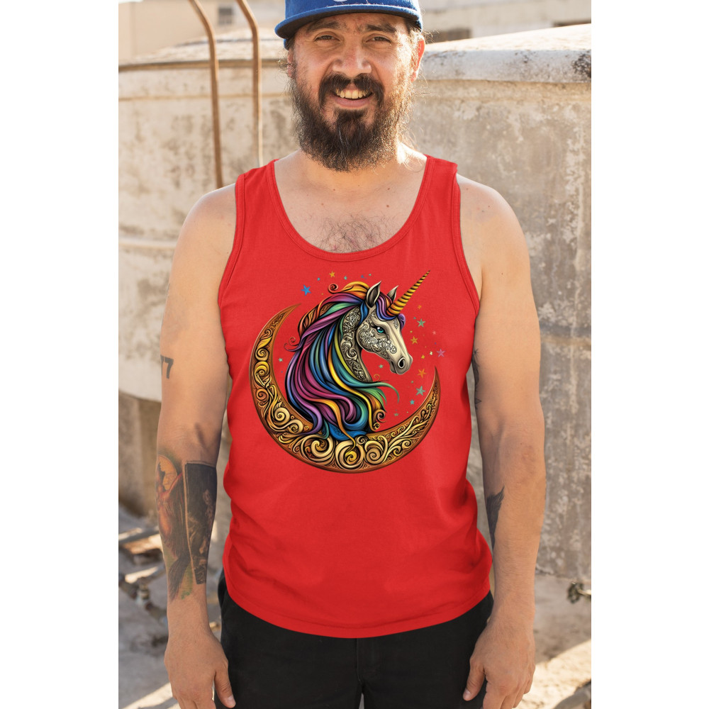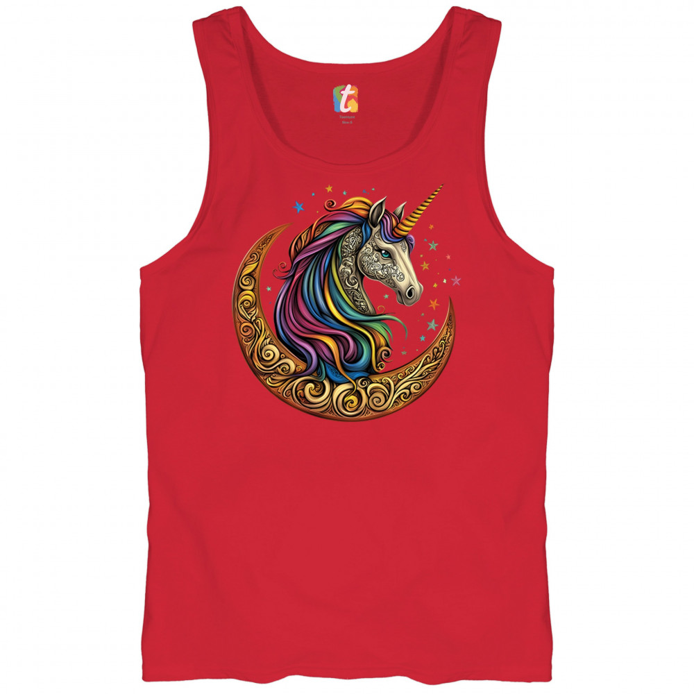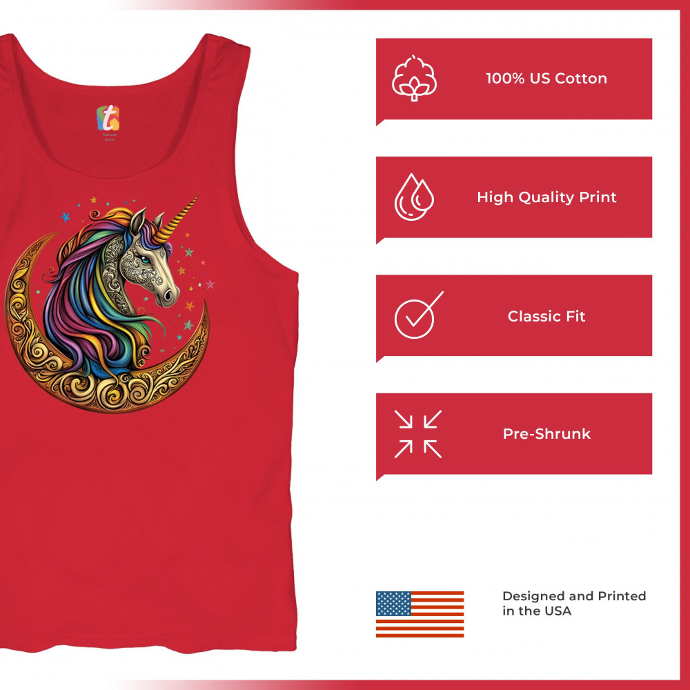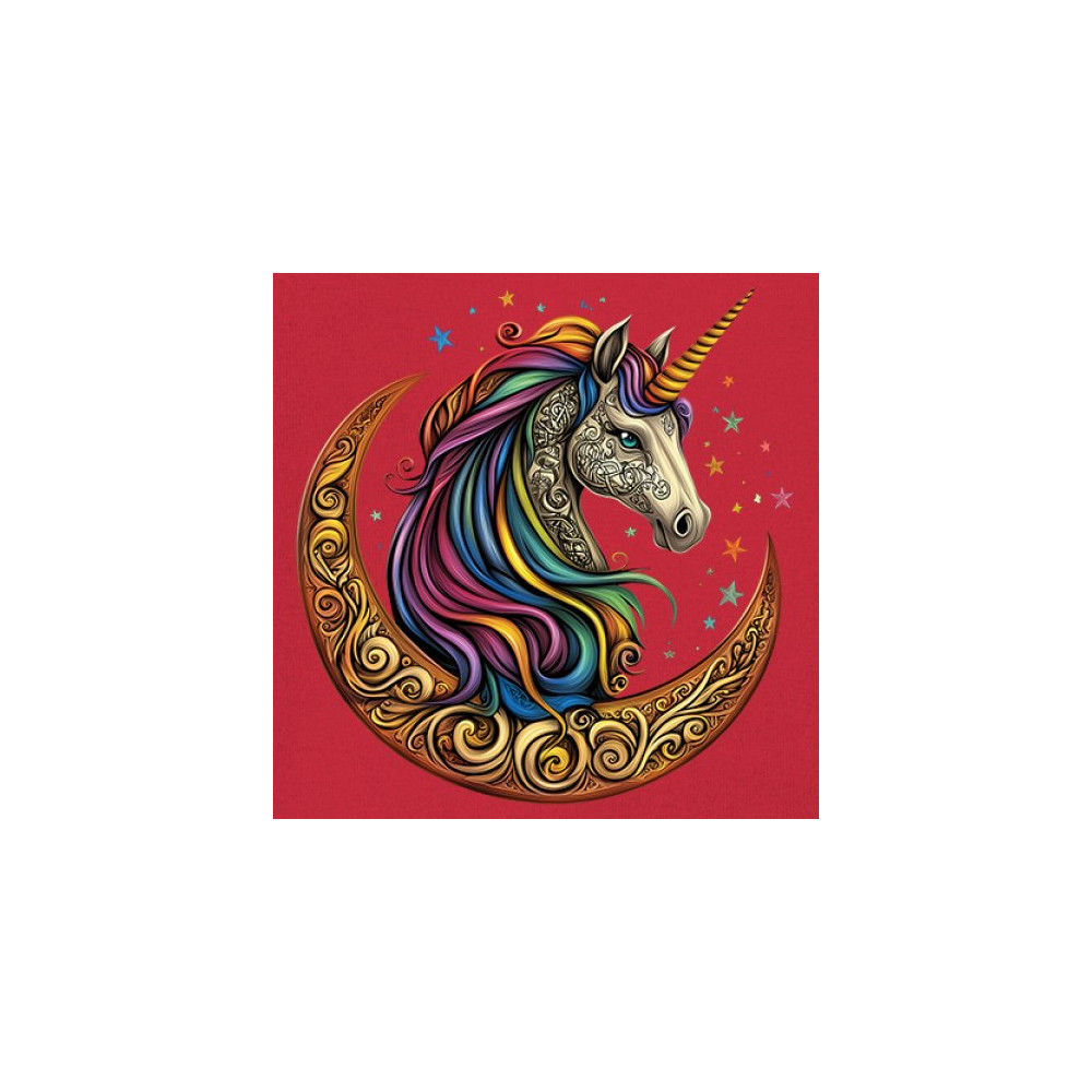 Rainbow-maned unicorn in golden Celtic moon design—perfect for fantasy lovers, dreamers, and unicorn fans who believe in magic and spirit.