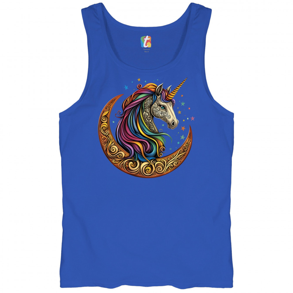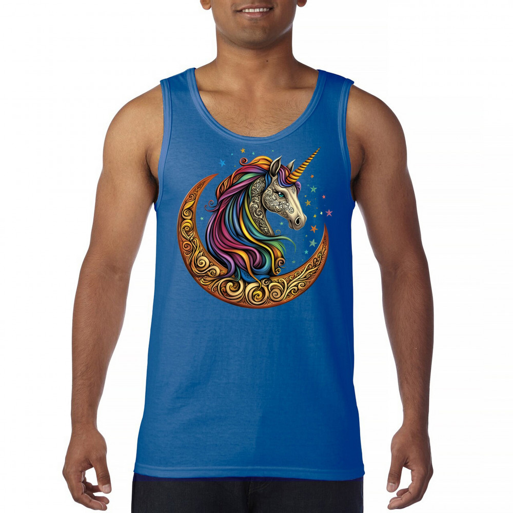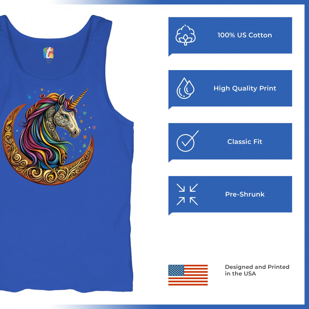 Rainbow-maned unicorn in golden Celtic moon design—perfect for fantasy lovers, dreamers, and unicorn fans who believe in magic and spirit.