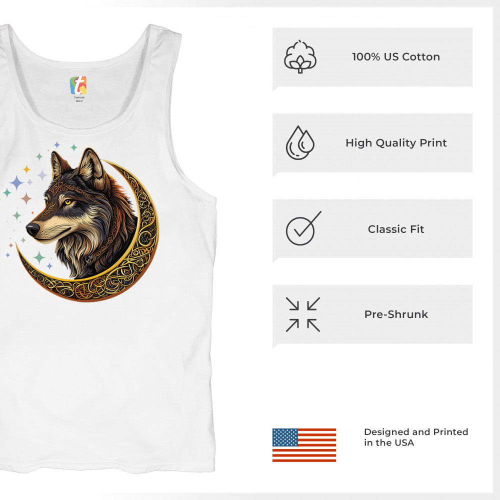 Celtic wolf design in a glowing crescent moon. Symbolizes loyalty, mysticism, and wild energy. Great for fantasy fans and spirit animal seekers.