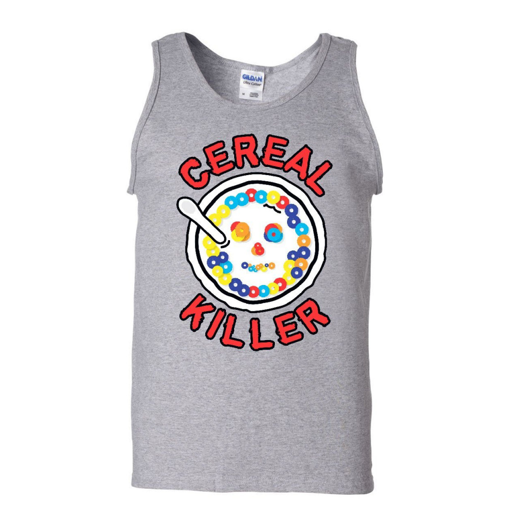 CEREAL KILLER tank top funny breakfast morning meal serial killer sleeveless gray