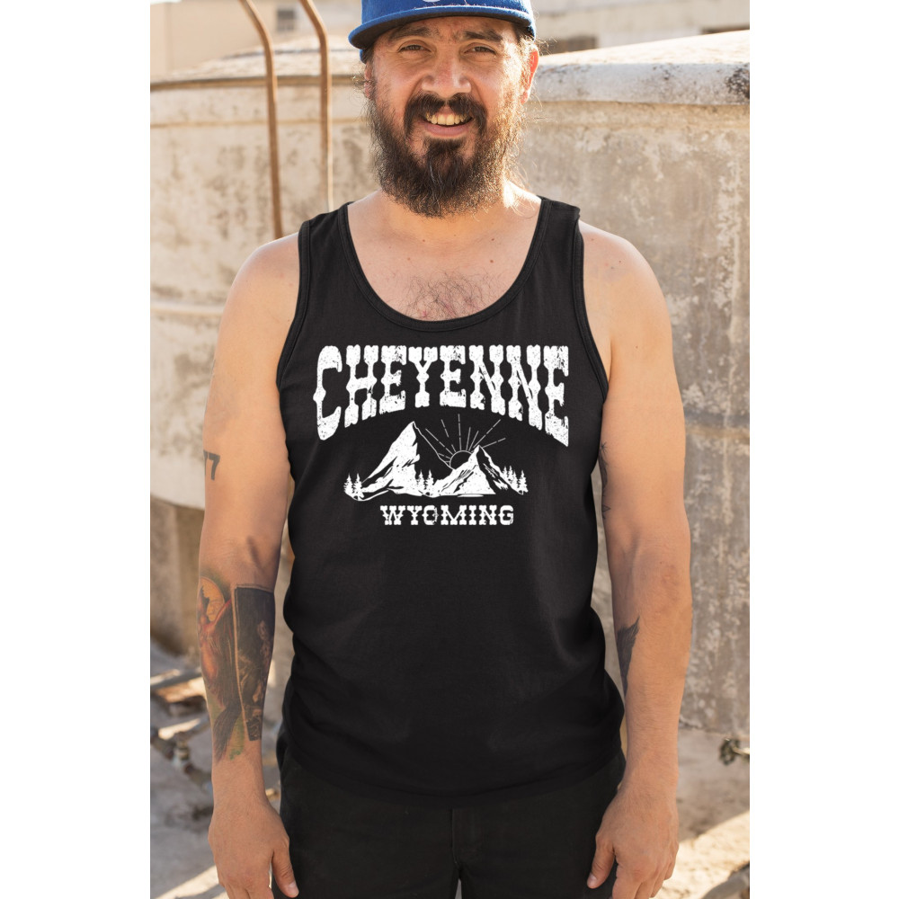 Celebrate Wyoming's beauty with this Cheyenne mountain sunrise design. Featuring vintage-style mountain scenery and Western font, it captures the essence of local pride and rugged outdoor adventure. Perfect for travelers, hikers, or anyone who loves the Western landscape.