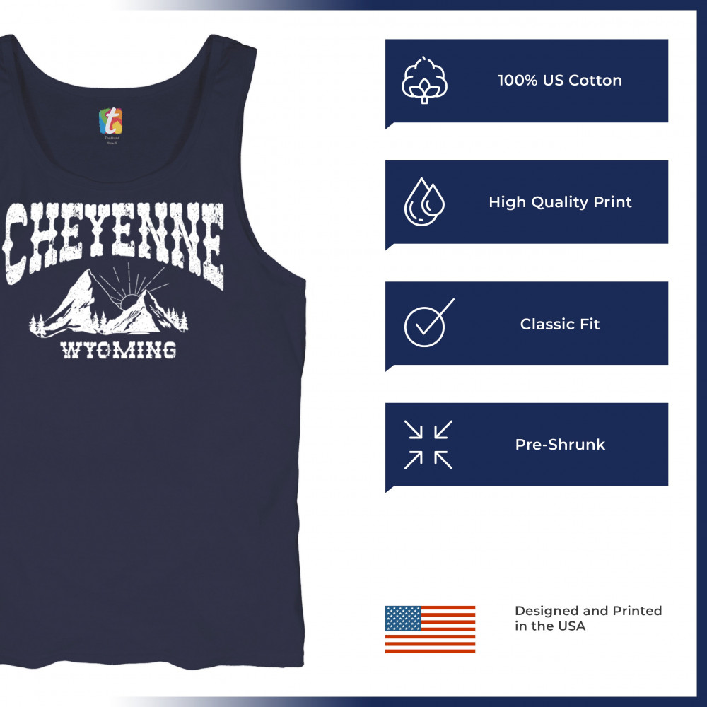 Vintage Cheyenne Wyoming design with mountain sunrise for outdoor lovers and locals. Perfect for travel, hiking, or Western pride.