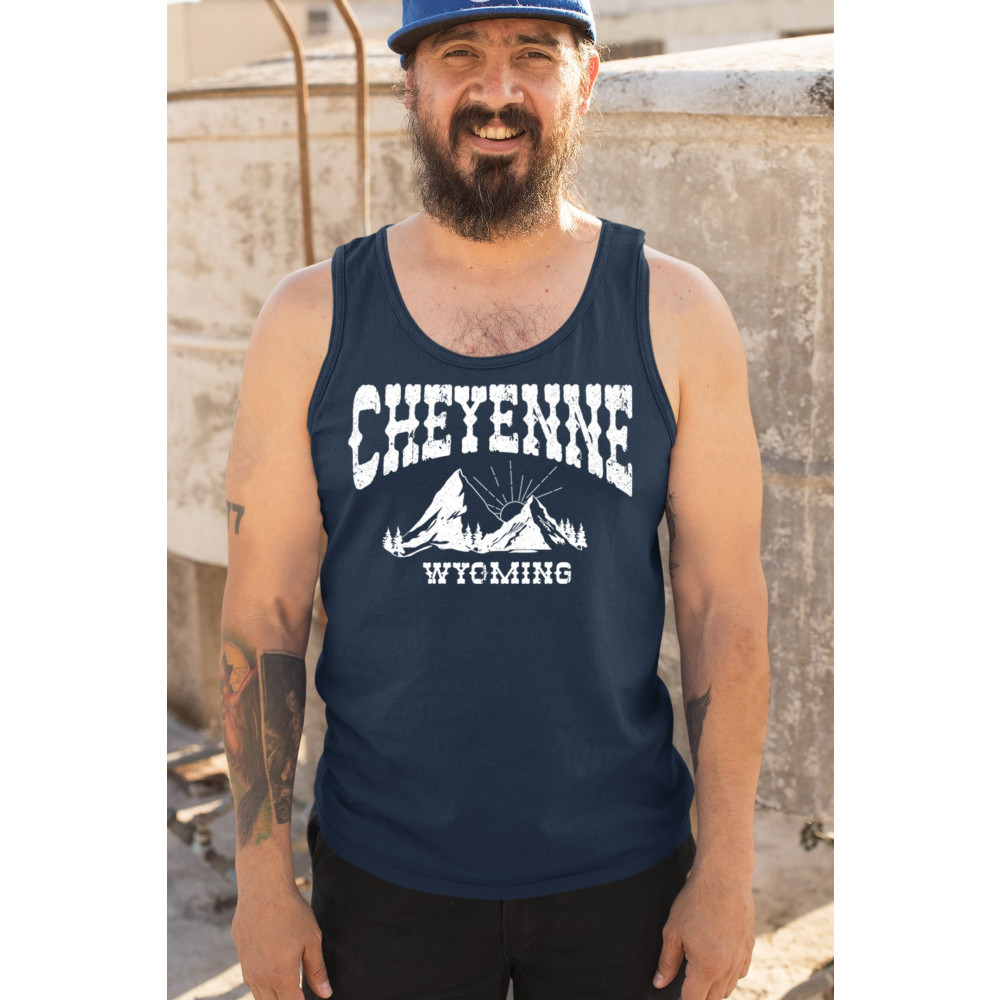 Celebrate Wyoming's beauty with this Cheyenne mountain sunrise design. Featuring vintage-style mountain scenery and Western font, it captures the essence of local pride and rugged outdoor adventure. Perfect for travelers, hikers, or anyone who loves the Western landscape.