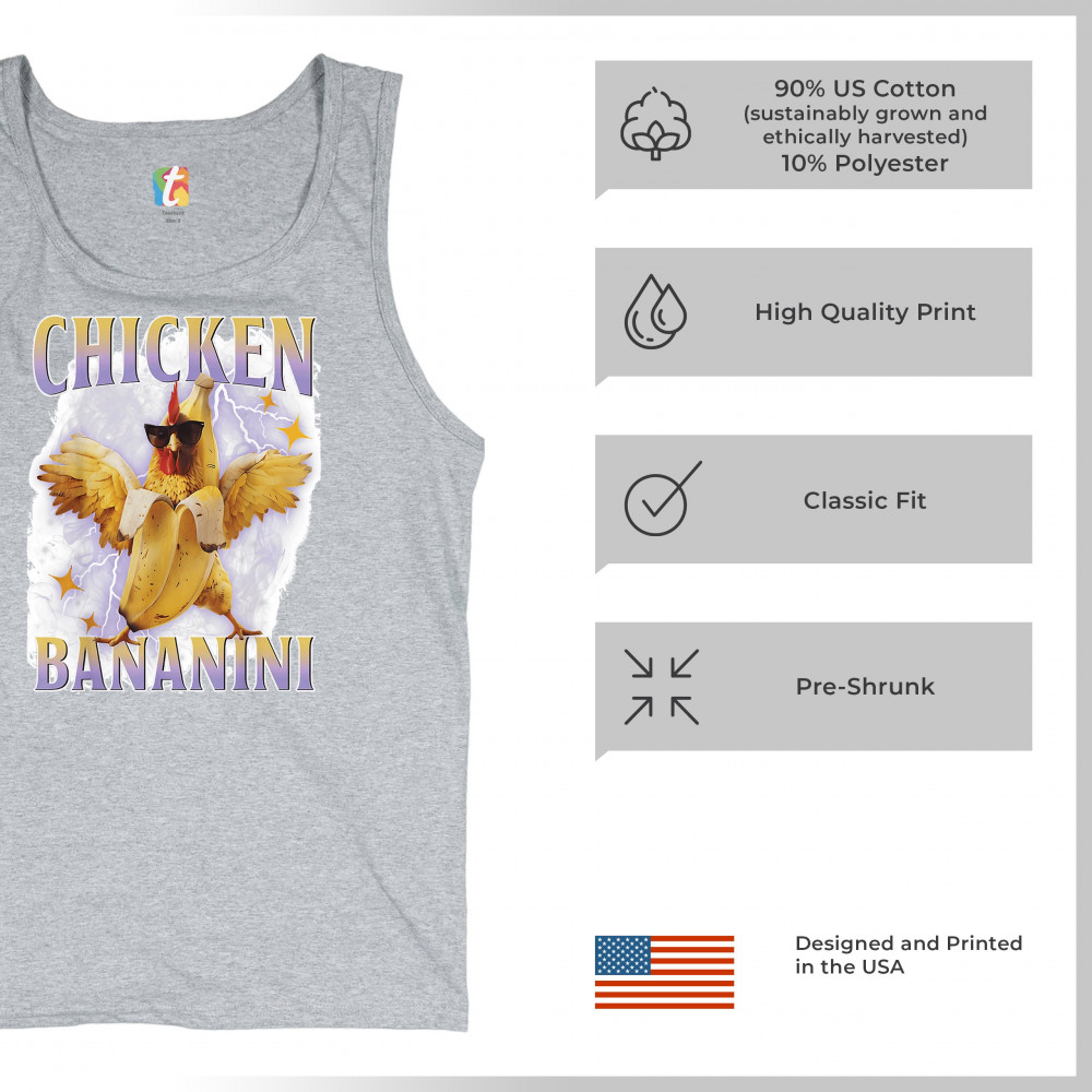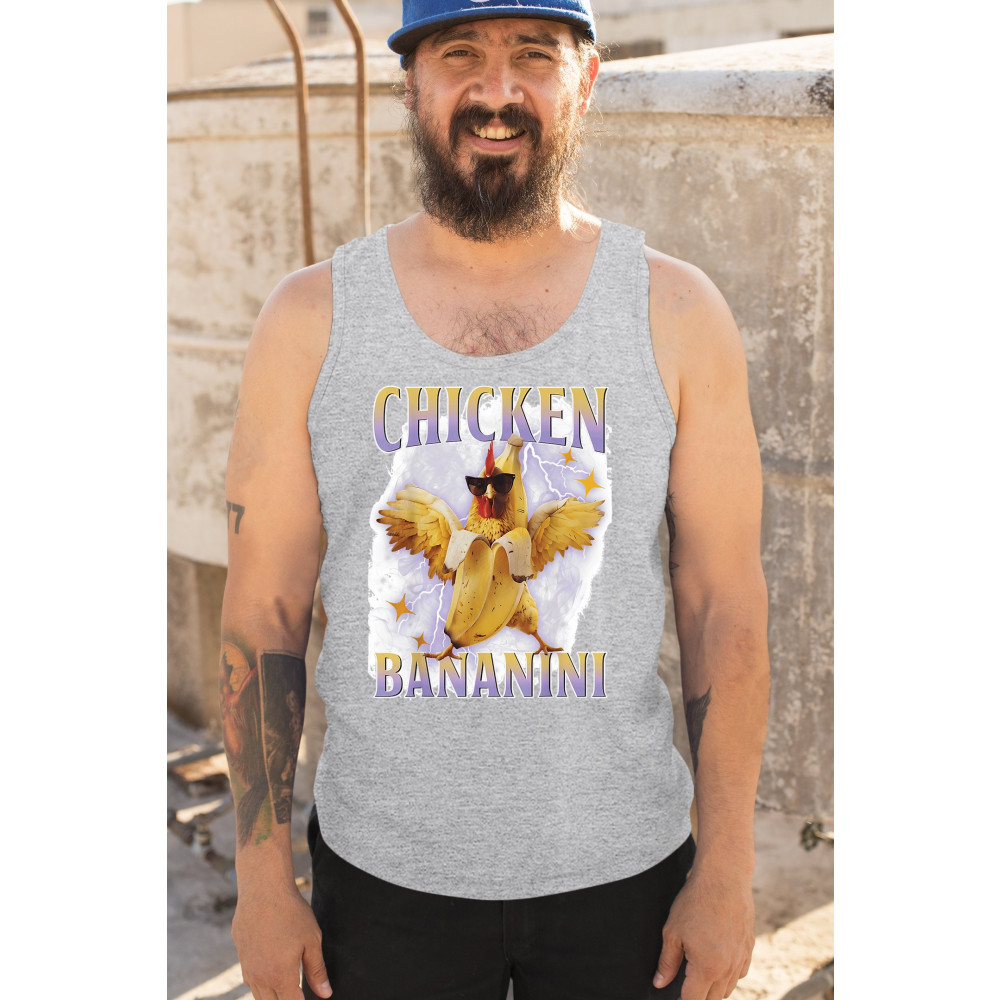 Chicken Bananini is meme absurdity with extra peel. Featuring a chicken emerging from a banana and rocking shades, this design blends cursed-core fashion, viral animal humor, Gen Z brainrot, and TikTok-style chaos. A must-have for fans of ironic mashups, surreal creatures, and internet-fueled nonsense.