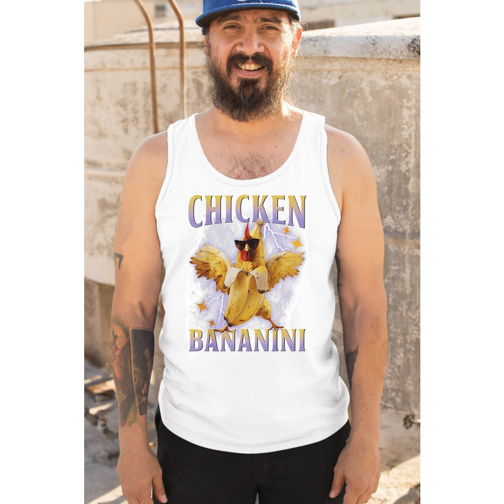 Chicken Bananini is meme absurdity with extra peel. Featuring a chicken emerging from a banana and rocking shades, this design blends cursed-core fashion, viral animal humor, Gen Z brainrot, and TikTok-style chaos. A must-have for fans of ironic mashups, surreal creatures, and internet-fueled nonsense.