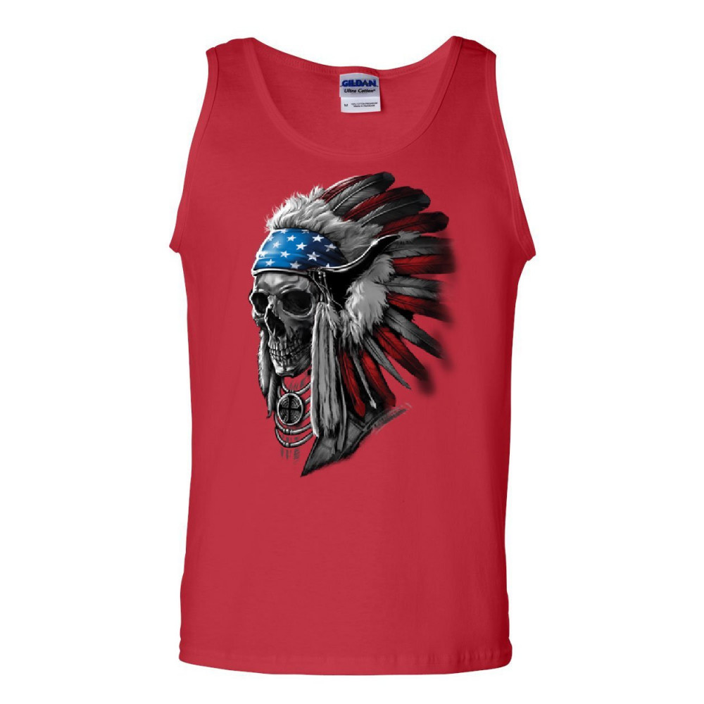 CHIEF SKULL HEADRESS tank top native american stars and stripes sleeveless red