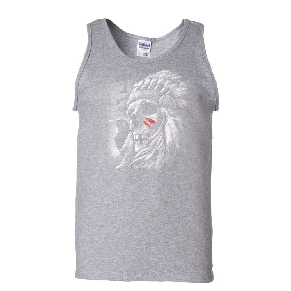 CHIEF SKULL WARBONNET HEADDRESS tank top native american heritage sleeveless gray