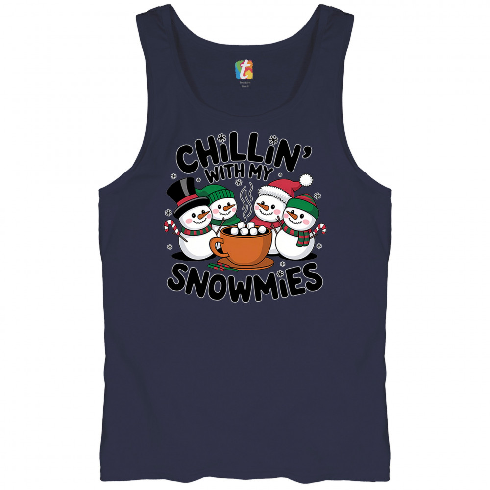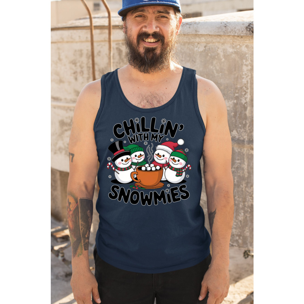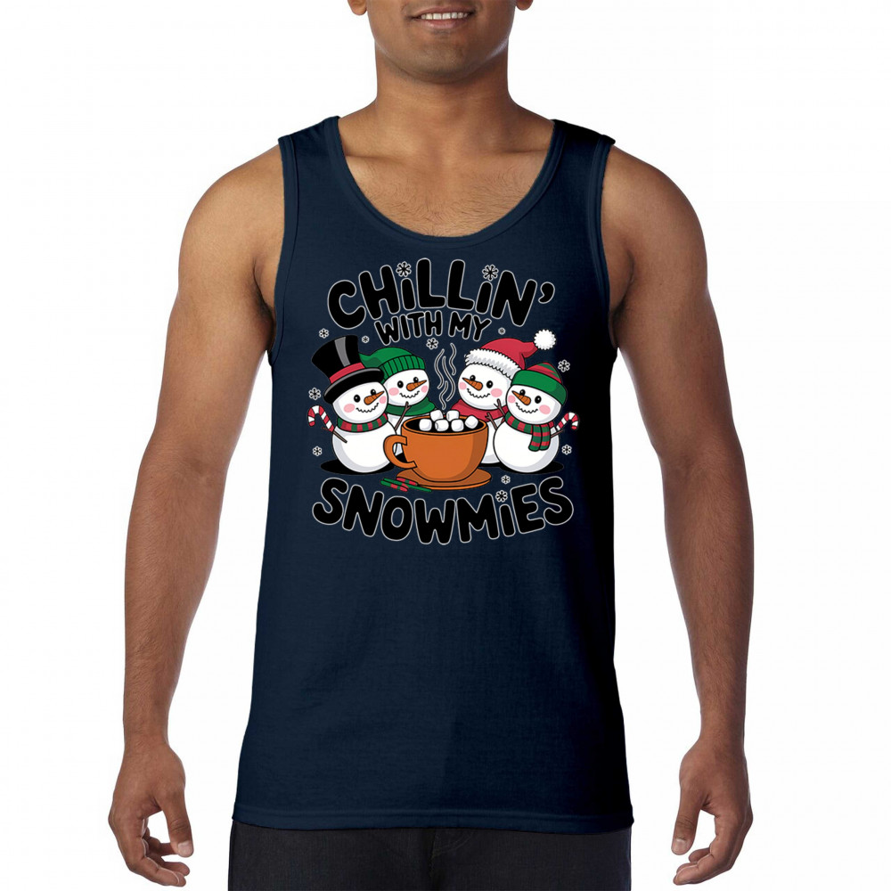 A cute and cheerful winter design showing happy snowmen sharing hot cocoa, perfect for Christmas gatherings, holiday events, seasonal photos, white-elephant gifting, festive family nights, winter celebrations, cozy weekend vibes, and fans of playful holiday humor. A fun graphic for anyone who loves bright and friendly Christmas styles.