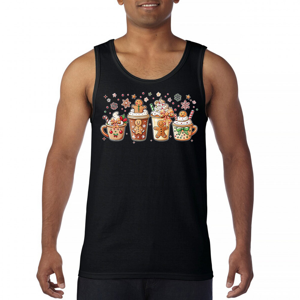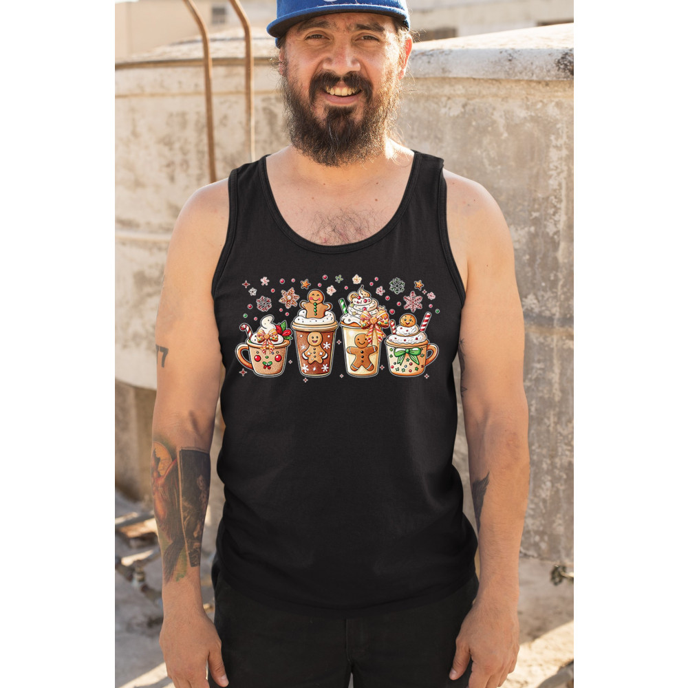 CHRISTMAS DRINKS men's tank top cozy hot chocolate gingerbread sprinkles black