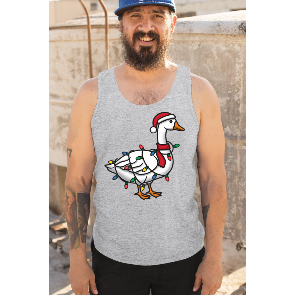 Funny Christmas goose wrapped in lights with festive humor, perfect for holiday gifting, white elephant exchanges, and cheerful seasonal style.