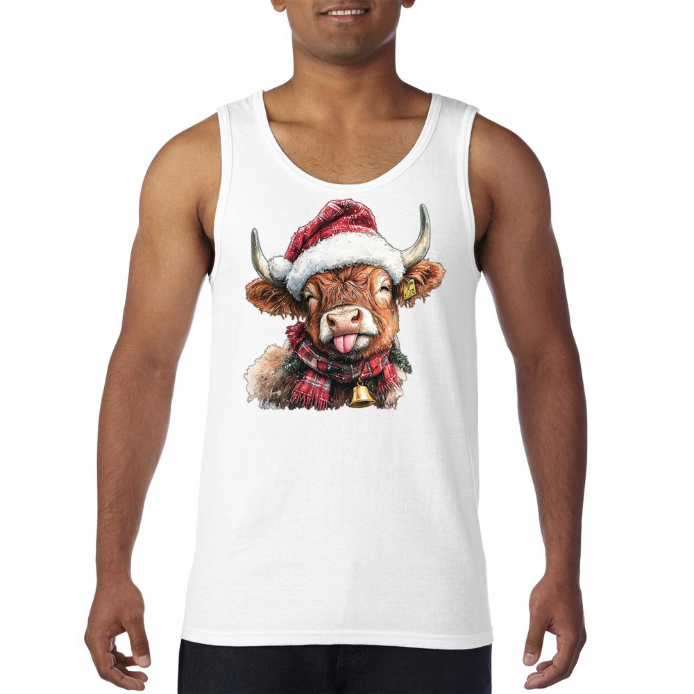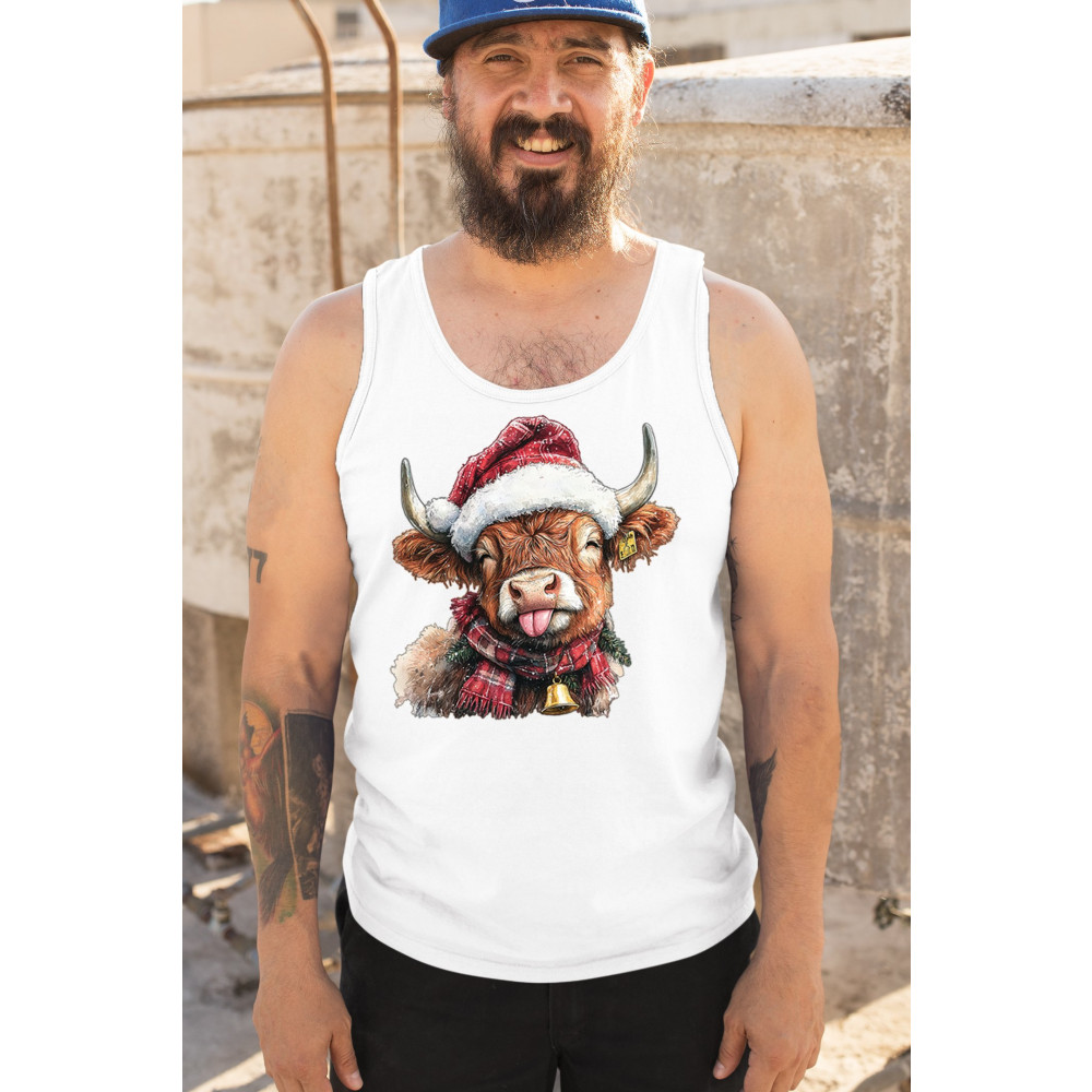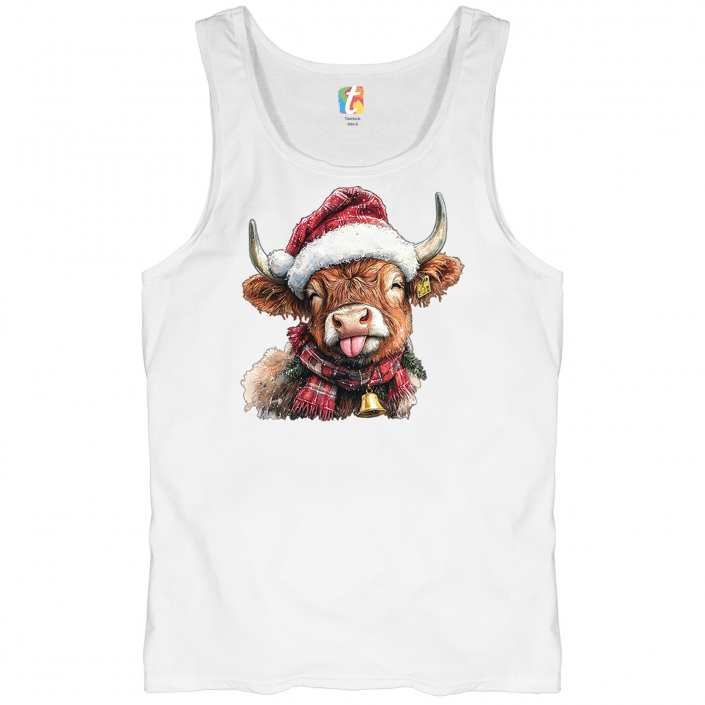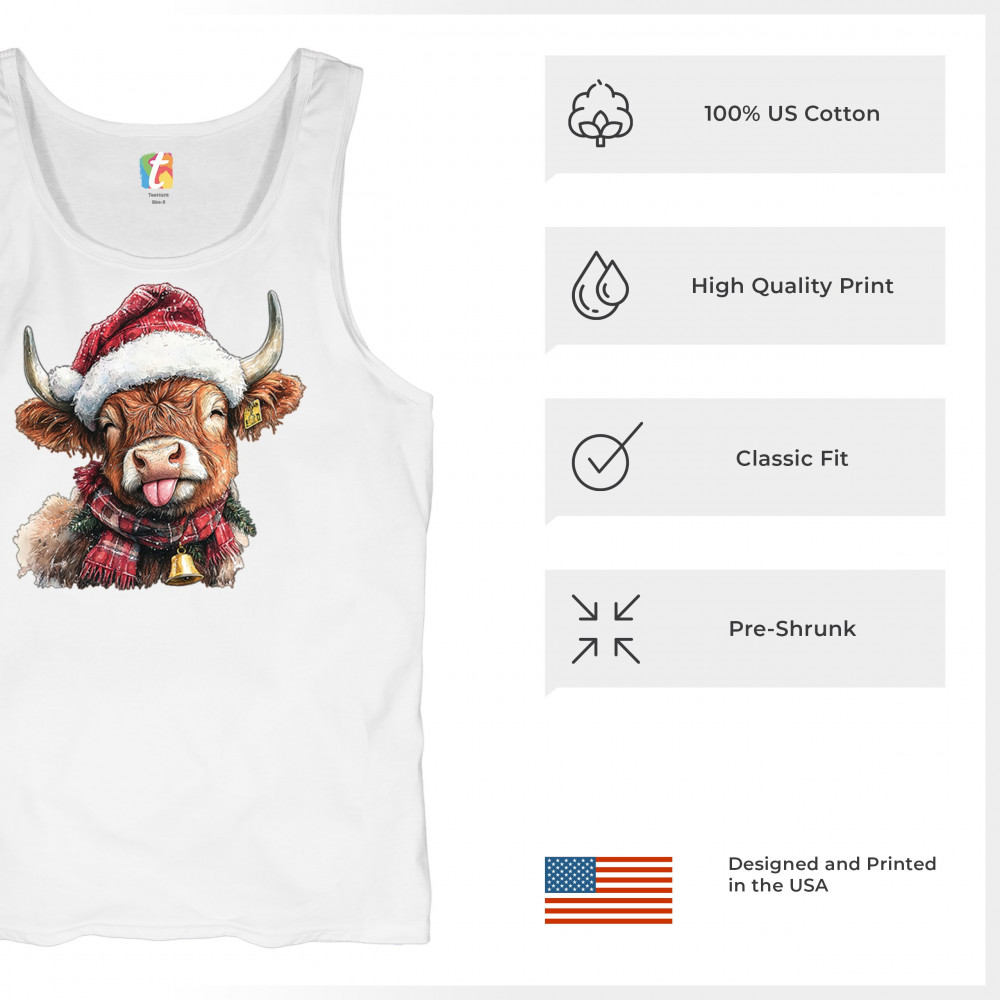 Christmas Highland Cow shirt – rustic holiday design with Santa hat cow, farmhouse holiday humor, country Christmas vibes, and festive livestock art.