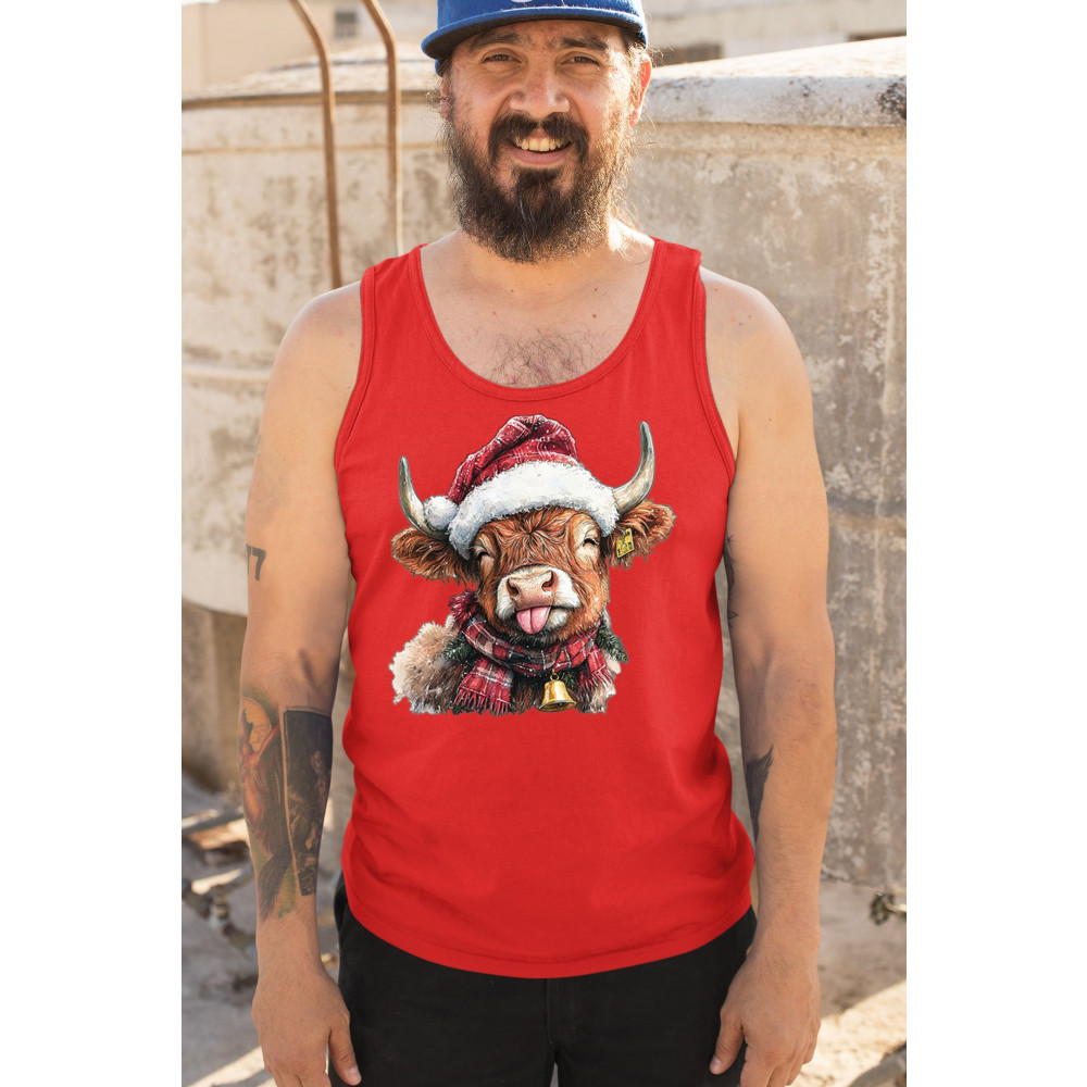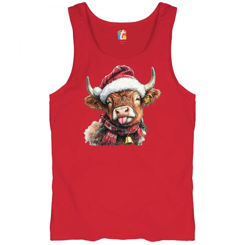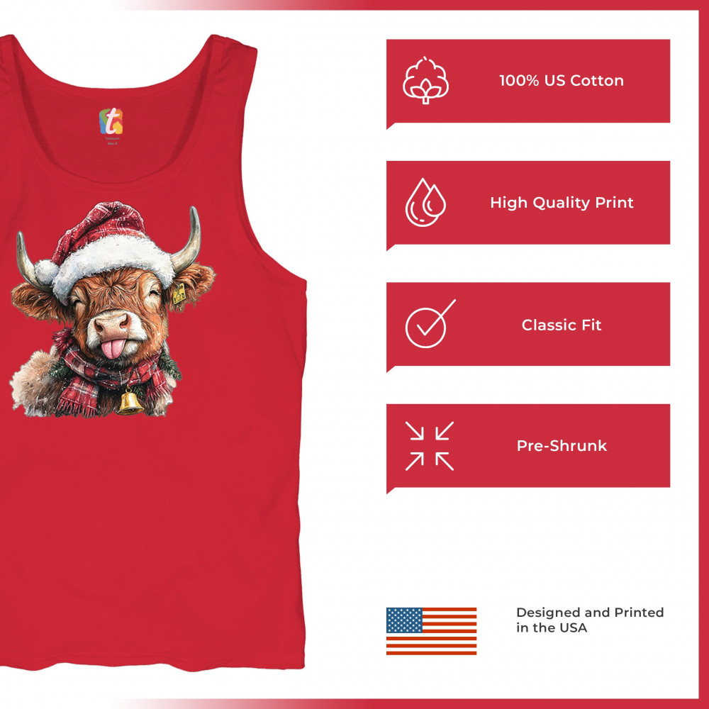 Christmas Highland Cow shirt – rustic holiday design with Santa hat cow, farmhouse holiday humor, country Christmas vibes, and festive livestock art.