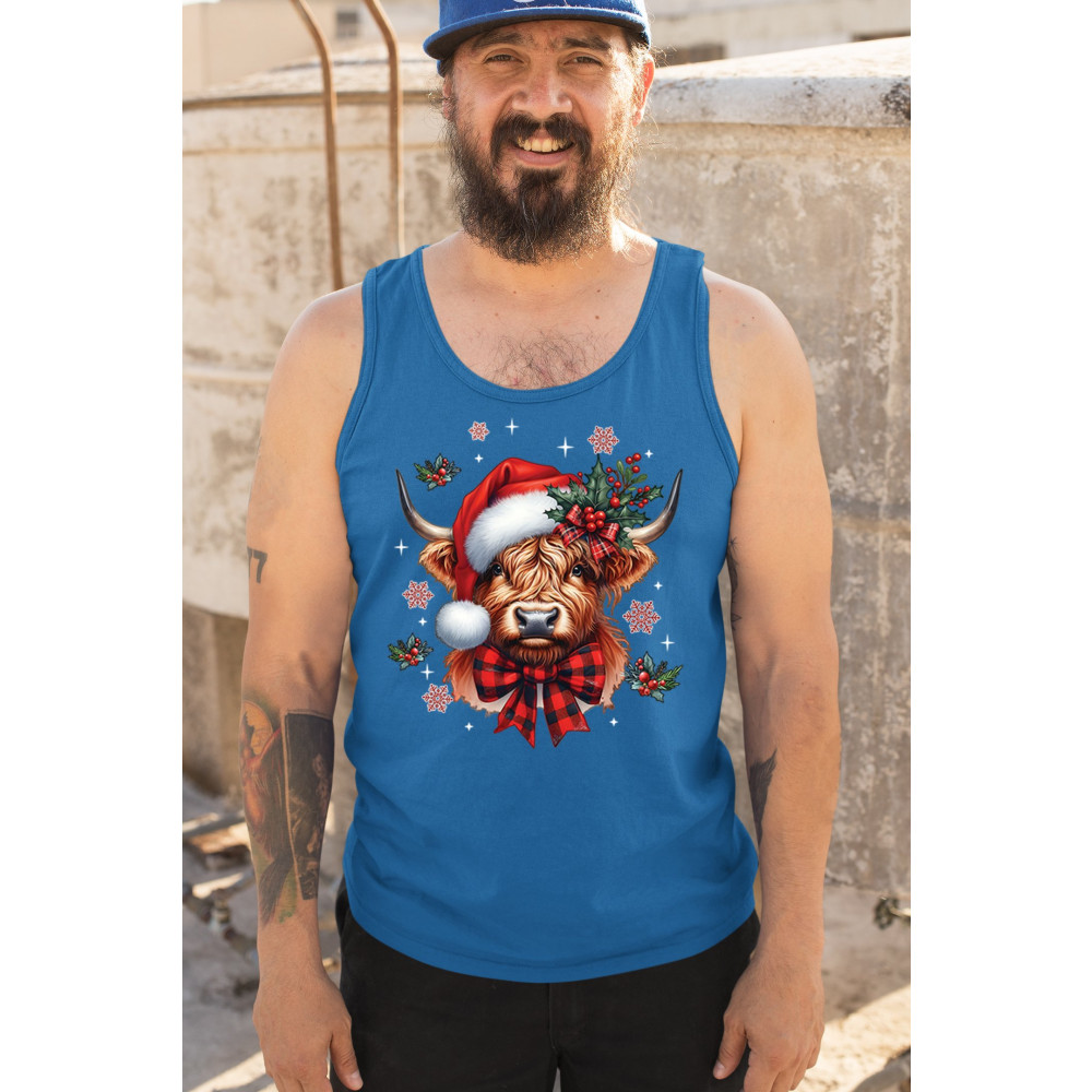 This adorable Highland cow Christmas design blends farmhouse charm, rustic holiday style, and classic winter décor. With a Santa hat, plaid bow, holly, and snowflakes, it delivers warm festive energy that fits perfectly with country décor, woodland themes, cozy farm aesthetics, holiday gifting, and seasonal celebrations. Ideal for fans of cute animals and cheerful Christmas graphics.c